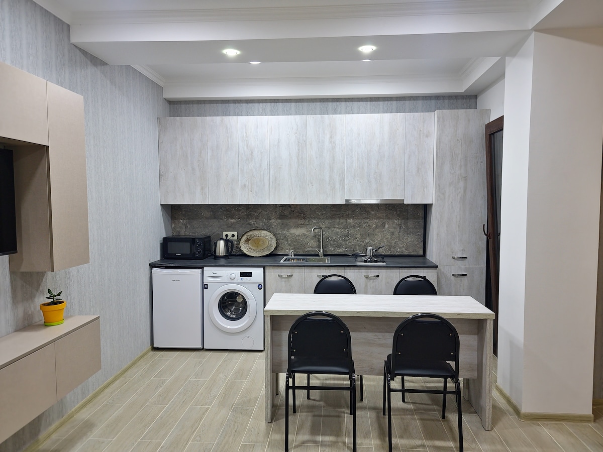 Ovaj jedinstveni smještaj se nalazi u samom srcu Starog Kutaisija, samo nekoliko koraka od centra grada. Njegov moderan dizajn i bogata lista pogodnosti zadovoljit će sve vaše potrebe: 2 udobna bračna kreveta (160–179 cm), svježi peškiri i posteljina, udoban kauč s jastucima, potpuno opremljena kuhinja za samostalnu pripremu hrane, pametni TV, brzi Wi-Fi, klima uređaj, mašina za pranje veša i besplatna kafa i čaj. Zato se opustite, uživajte i osjećajte se kao kod kuće🏠 🚭 Zabranjeno pušenje u zatvorenom prostoru Kućni ljubimci nisu 🐾 dozvoljeni