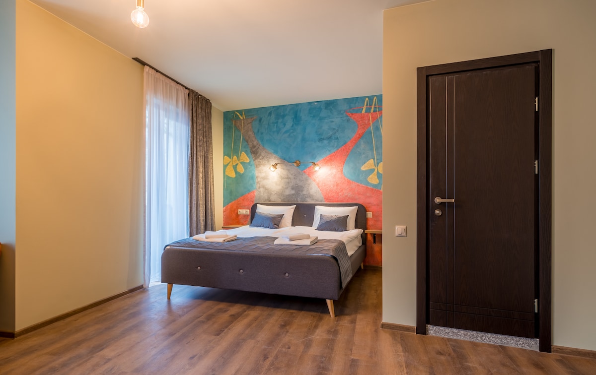 Dobro došli u Art Hotel Home – boutique hotel sa 7 soba u srcu historijskog Starog grada Tbilisija. Ova Deluxe soba je savršena za 2 gosta i uključuje balkon. Gosti također mogu uživati u našem kafiću na krovnoj terasi s panoramskim pogledom na grad.