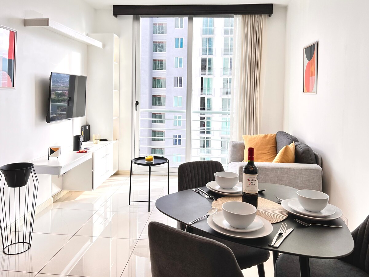 Luxury Apartment with perfect and convenient location, specially designed for your confort and security. - Gated 24/7 security entrance apartment complex - Only 10 min away from SJO international airport - A mall plaza in promises - Free parking spot - Dog's park - 2 Pools and 2 jacuzzies - 5 min from National convention center - Nightlife, bars, restaurants - Only minutes from the 3 majors business center in the country - 3 Shopping malls close by Many more options right there for you!
