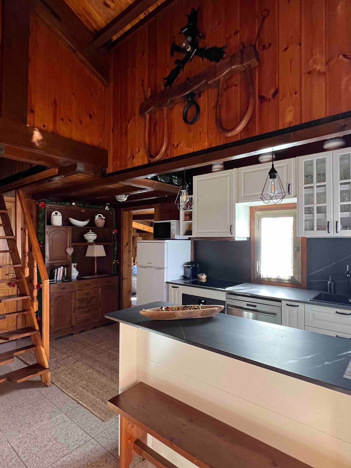 Drvena planinska kuća 150m2, na parceli od 2000 m2 okruženoj šumskom parcelom. Drvena kuća izgrađena 2007. godine, s dva sprata i garažom za dva potpuno opremljena automobila. Prekrasan pogled na Pirineje. S velikim domom drva za ogrjev u otvorenom dnevnom boravku otvoren je za oba sprata. Nalazi se u šumi, s velikim drvećem, prostorom za roštilj, visećim ležaljkama, drvenom dječjom seoskom kućicom, natkrivenom terasom i velikim igralištima s travom. Idealno za porodične boravke i smještaja koji vole prirodu.