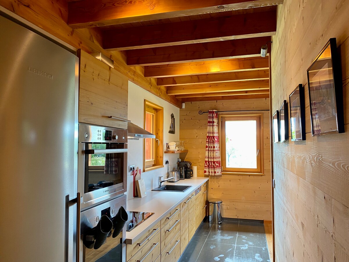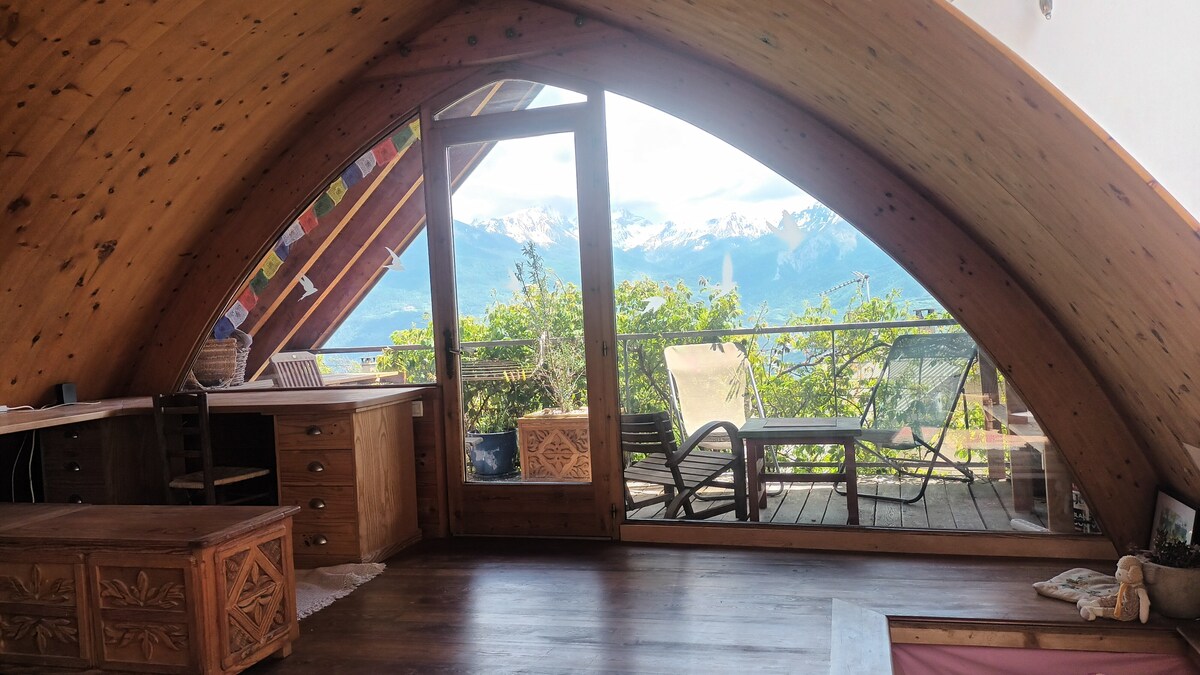 U planinskoj kući, udobnom novom smještaju, dostupnom pješice malom stazom. Vrlo mirna, privatna terasa i vrt , okrenut prema jugu/zapadu, s izuzetnim panoramskim pogledom na dolinu. Baza za odmor i centar sela 600m hoda, Javni parking. 1 glavna spavaća soba, jedan kabriolet za 1 dijete u glavnoj sobi, TV, Wi-Fi, kupatilo/WC. Kuhinja: šporet, rerna, mikrovalna pećnica frižider /zamrzivač, aparat za raclette,blender, aparat za kafu.