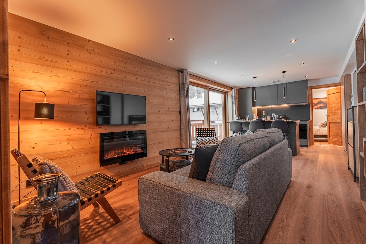 Penthouse des Fes, čiji je domaćin More Mountain, je luksuzan, elegantan stan od 70 m2 s 3 spavaće sobe u kojem može udobno spavati do 6 osoba. S dizajnerskim kaminom i ogromnim nadsvođenim plafonima, ovaj stan je zaista zapanjujući! Ima 3 spavaće sobe i 2 kupatila za 6 osoba. Samo 5 minuta hoda do grada i nasuprot skijaškoj autobuskoj stanici, nudi fantastičnu lokaciju s pogledom na jug.