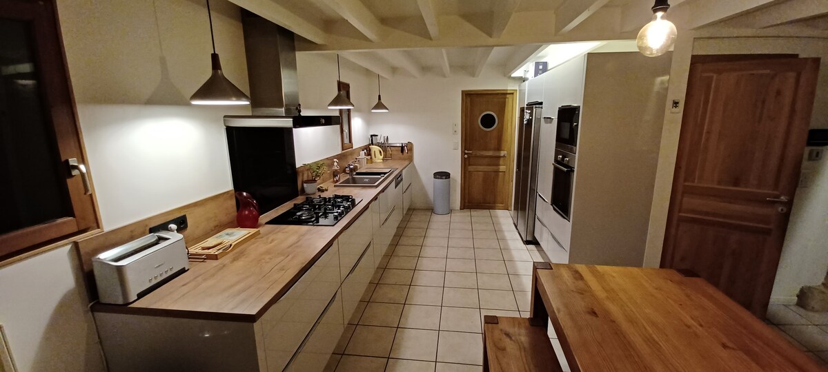 Velika kuća u srcu malog sela Ostavite šarm da radite, uživat ćete u cijeloj kući. 25 minuta od Nantesa i 6 minuta od svih prodavnica. Za vruće večeri možete večerati ispod pergole. Dostupan je mobilni roštilj ili vanjski kamin. Za hladnije večeri, možete roštiljati u maloj audio/video sobi. (dostupni su pierrades i mašina za fondue) Bazen tokom cijele godine, grijan 6 mjeseci/12 mjeseci/12 mjeseci/12