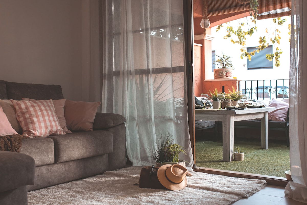 The comfortable apartment in Mar de Pulpi has a south facing terrace with a view on the indoor garden and the swimming pool which is located in San Juan de los Terreros at walking (5-10 min) distance from the beach. It is a comfortable modern apartment with the facilities you have at home. It is located in a typical Spanish lovely coastal village with beautiful bays, mountain views, cozy yummy restaurants, beach bars, super market,... There are plenty of free parking spaces near the apartment