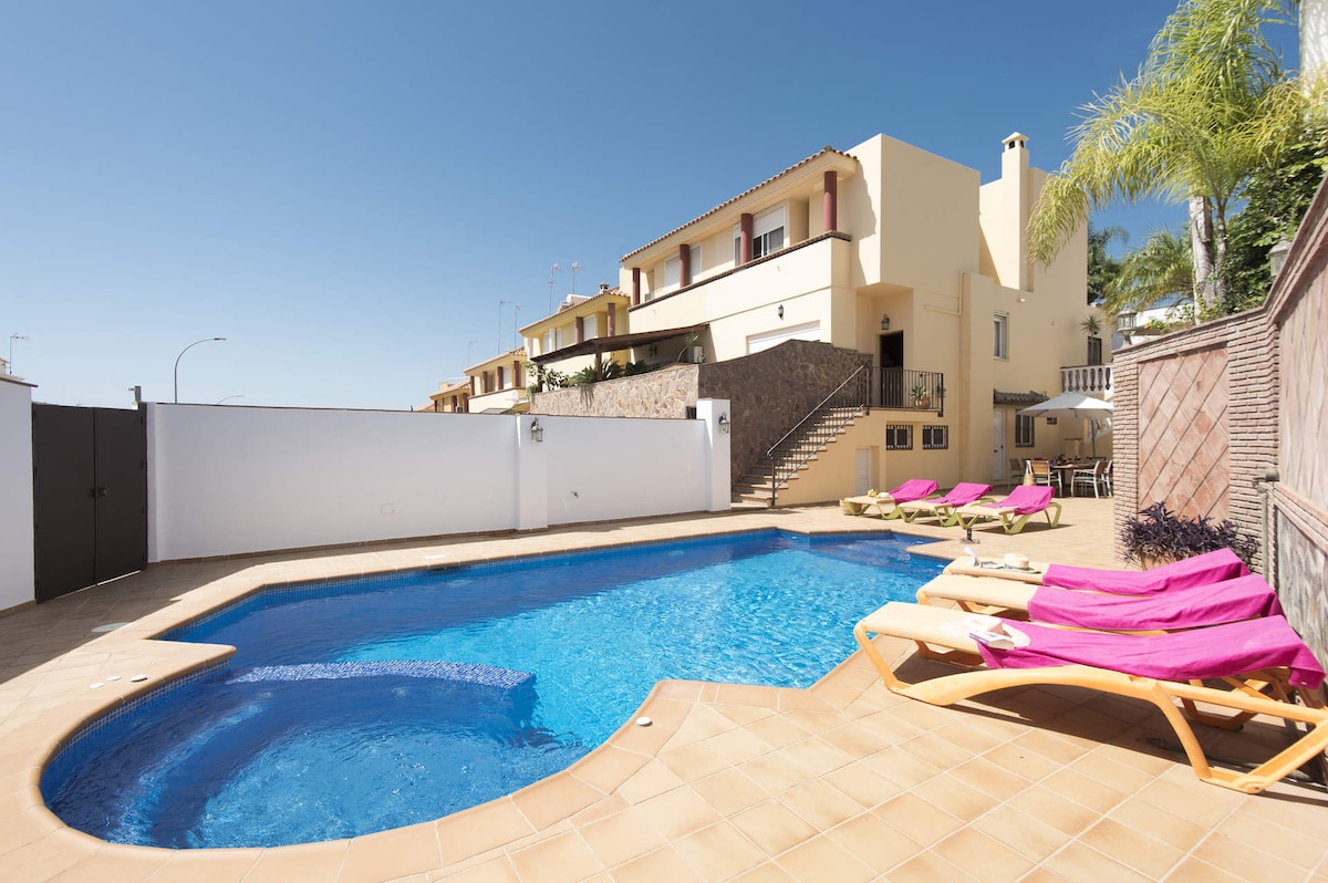 Luksuzna planinska kuća. Potpuno namješten i opremljen. 4 spavaće sobe 2 kupatila i WC šolja. S Wi-Fi mrežom. Klima UREĐAJ, HI-FI muzika, T. V. Savršeno za rad na daljinu. Svaka soba s pogledom na Mediteran i Sierra Nevadu. Ogromna terasa ( solarij, trpezarija i opuštanje ) kako biste uživali u pogledu. 2 ZAJEDNIČKA bazena i 24-satno osiguranje. Mir i tišina su uvjereni. 500 metara od plaže i 3 km od centra grada. Skijanje i plaža danju IDEALNA LOKACIJA za izlete.sendas.