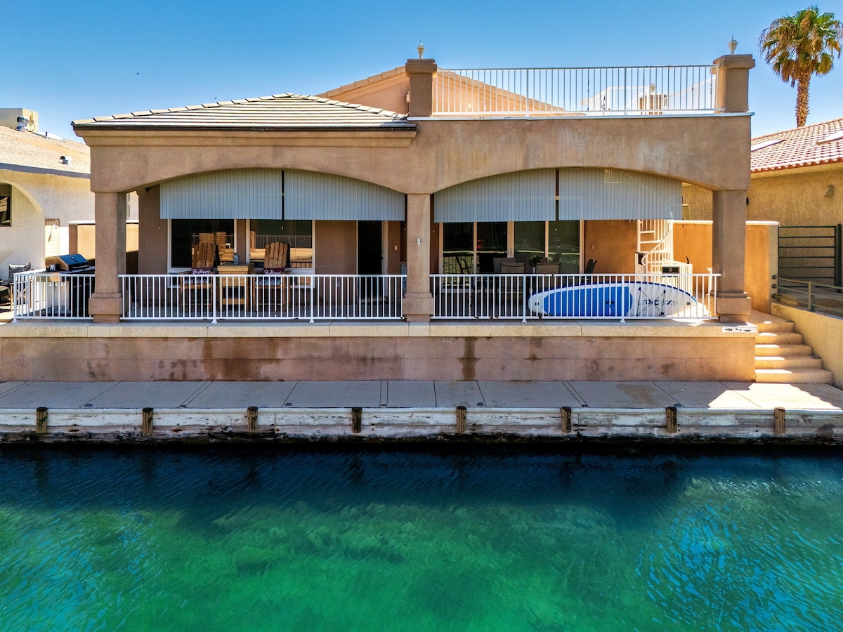 Smješten u centru grada na rijeci Colorado u Parker AZ-u, naš smještaj s 3 spavaće sobe i 2 kupatila s velikom terasom i terasom. 100 metara hoda do Road Runnera. Ekskluzivni dok i pristup vodi. Prekrasan pogled s prostorom za zabavu! Jednostavan pristup vodenim sportovima, plovidbi, jet skijanju, veslanju na dasci, golfu, planinarenju, ribolovu, lovu, off-road jahanju, igranju u kazinu, uživanju u društvu drugih ili samo sjedeći pored rijeke uživajući u pogledu i sjajnim zalascima sunca.