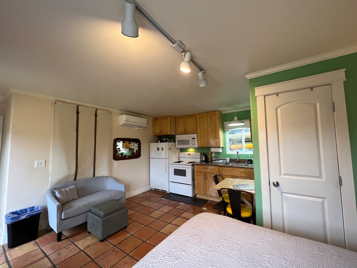 Welcome to Manresa Surfhouse, a trendy boutique coastal retreat just 500 yards from the beach! This stylish studio unit sleeps 2 and is part of a spacious 5-unit property on half an acre. Enjoy your own private outdoor space, plus access to ' Platforms'—a shared community area perfect for relaxing. Designed as a complete coastal getaway, it offers everything you need inside and out. Grab our complimentary bikes and explore nearby Manresa State Beach, or venture minutes away to Santa Cruz’s best