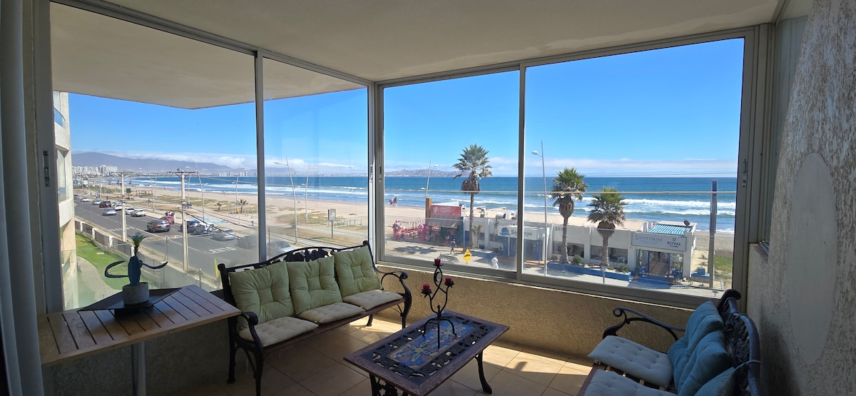 Uz obalu okeana, na prvoj liniji plaže, pored kazina Uživajte. Direktan pogled na more. Zgrada sa svim sadržajima, bazenima, teretanom, vešerom, 24-satnim konsijeržom, natkrivenim parkingom. Nekoliko koraka od najboljih restorana, minimarketa, biciklističke staze i 20 minuta od aerodroma Coquimbo. Potpuno opremljen stan, sa 3 spavaće sobe, za 6 osoba. Ima kablovsku TV, internet, opremljenu kuhinju, jacuzzi u glavnoj spavaćoj sobi, posteljinu i peškire.