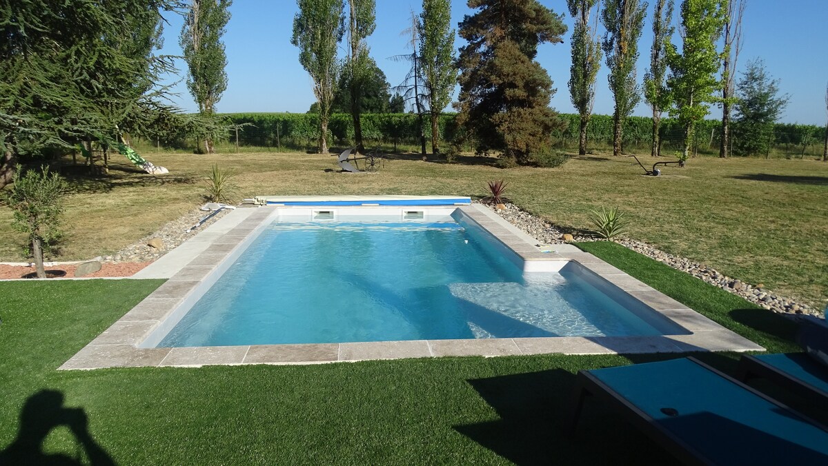 Bivša seoska kuća s kraja 19. vijeka u potpunosti renovirana (215 m2), u velikom vrtu od 3ha, 60 km istočno od Bordeauxa i 1,5 km od Bastidea Monségura. 4 spavaće sobe (1 glavni apartman s krevetom 180, 2 sa 160 kreveta, 1 spavaća soba površine 30 m2 sa 6 kreveta za odrasle), 3 kupatila, 1 TV, stolni tenis, parking. Velika dnevna soba idealna za obroke za porodice ili prijatelje. Bit ćete na mirnom mjestu, usred prirode, idealno za opuštanje.