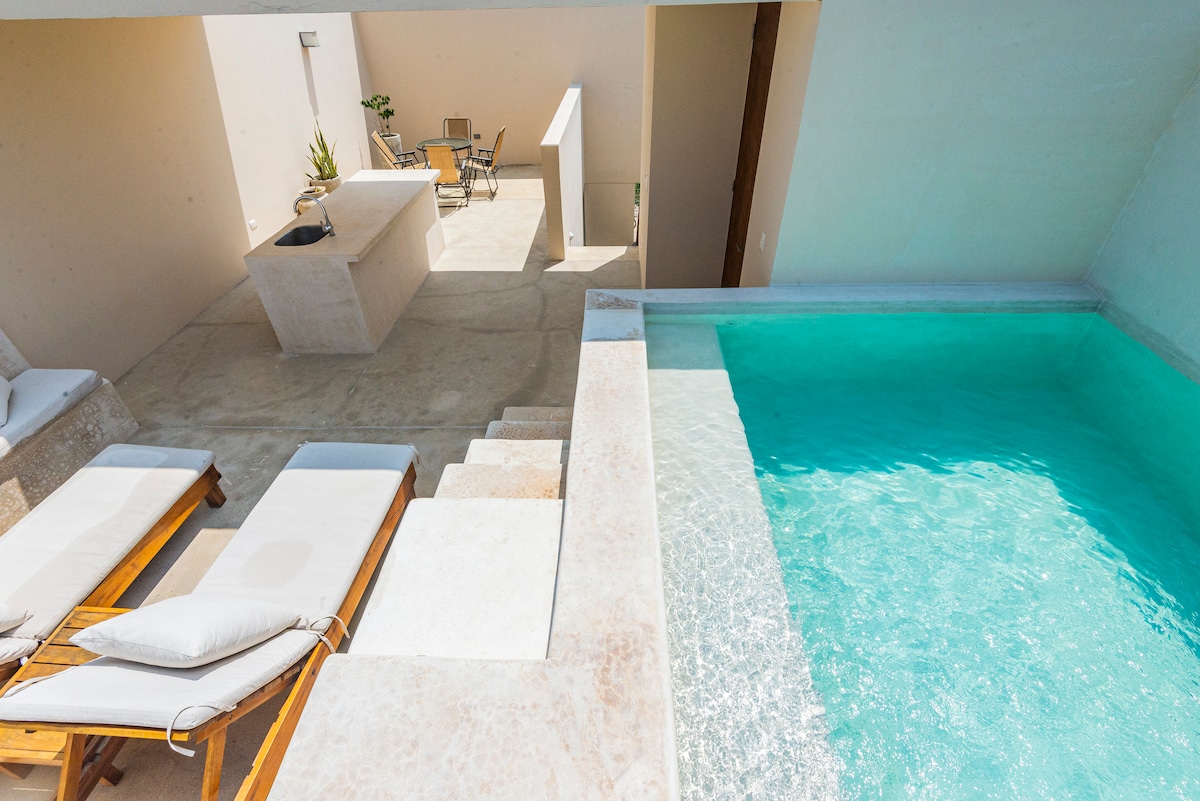 Casa Nómade is a 1600 sq ft / 140 sq mt boho-chic hideaway in La Veleta, tucked in a quiet boutique gated community near vibrant Calle 7. Unwind in your private jungle garden, a refreshing plunge pool with water cascade, and a built-in lounge for shaded afternoons. Inside, spacious areas meet handcrafted indigenous design. Enjoy a king bed, indulgent Yucatán Senses bath products, and high-speed Wi-Fi.
