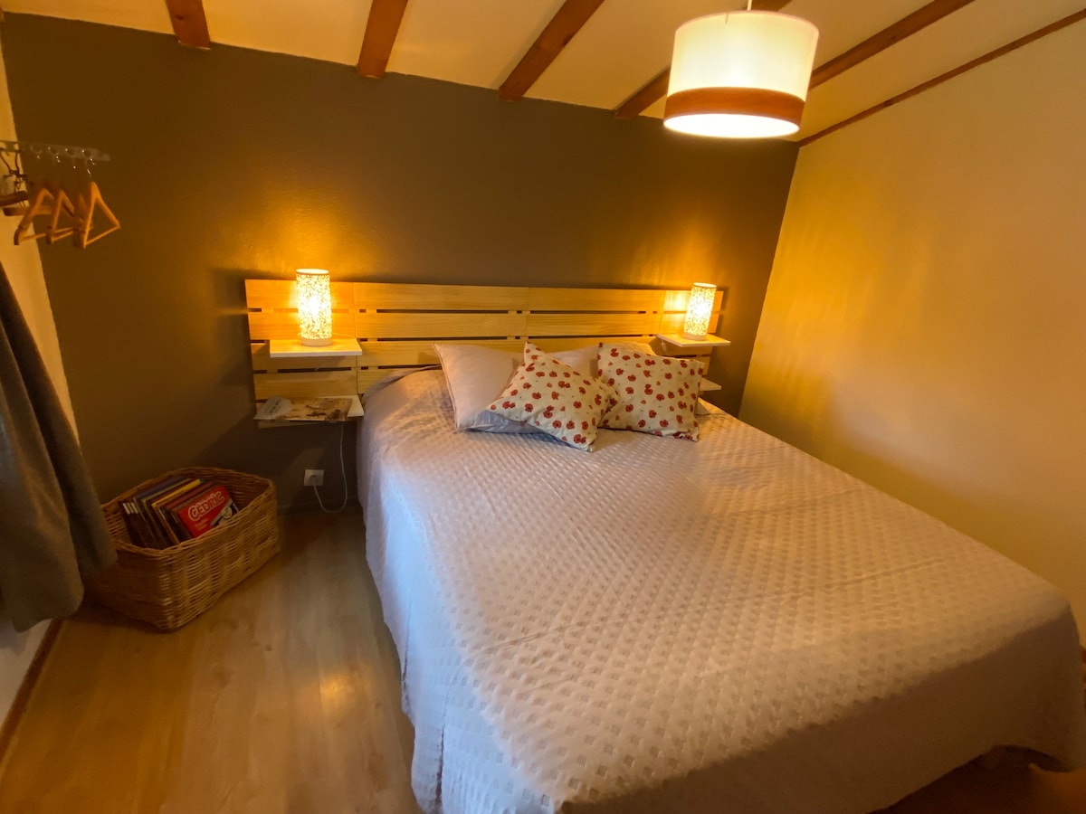Renovirali smo naš stari kameni dom kako bismo stvorili mirnu spavaću sobu i veliko kupatilo za naše roditelje, ali sada je to savršeno prilagođeno gostima. Imat ćete vlastiti vrtni ulaz, udoban krevet (odaberite bračni krevet ili blizance), dvostruke umivaonike, tuš i kadu, unutrašnje i vanjske garniture za sjedenje, hot Senseo stanicu za piće s mini frižiderom, centralno grijanje i dovoljno parkinga, uključujući natkriveni prostor za bicikle/motocikle. Samo za nepušače i bez kućnih ljubimaca.