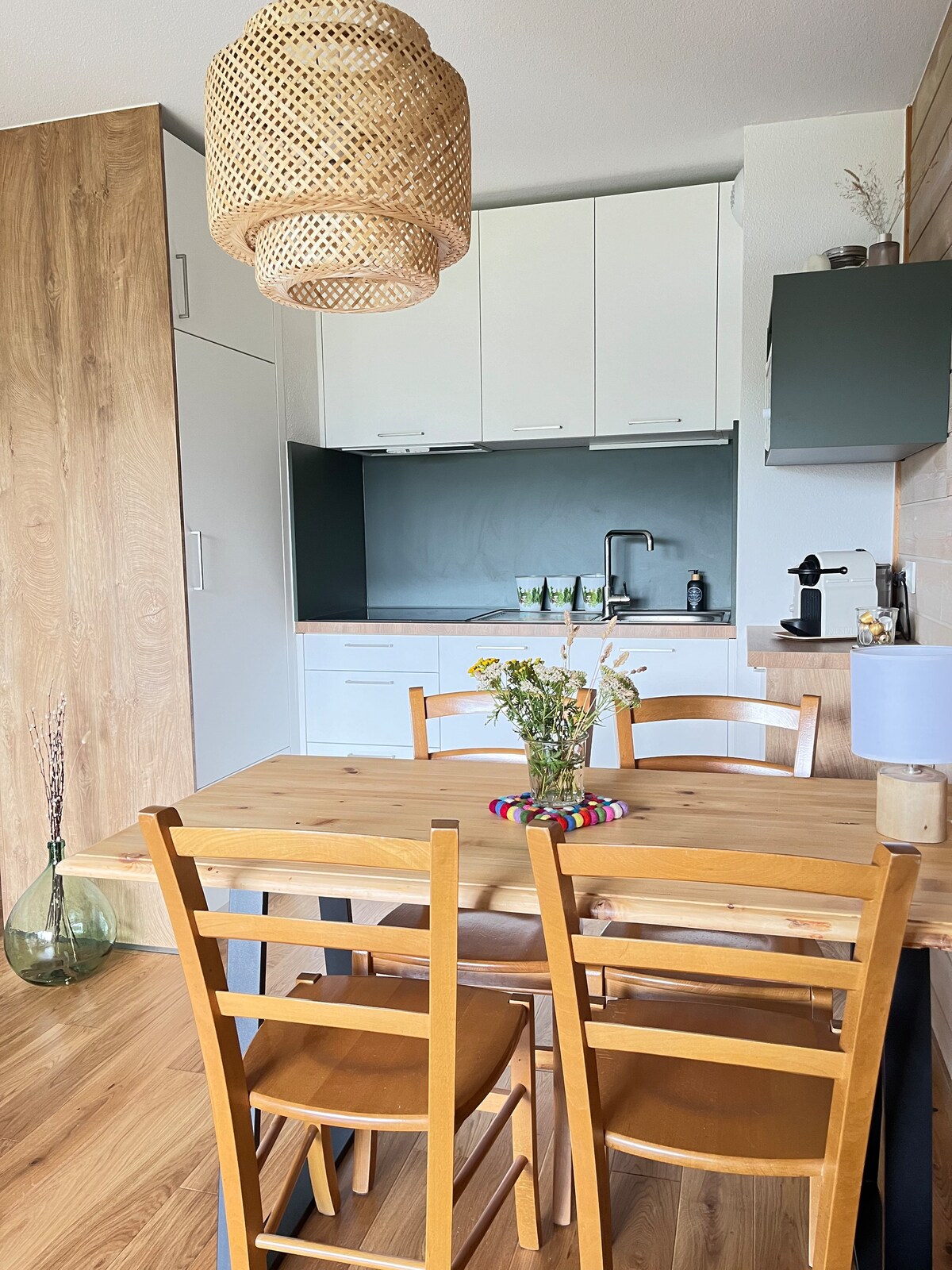54m² namješten turistički stan 3✨ za 5 osoba i jednu bebu/dijete u dobi od 2 godine. U zatvorenom: + oprema za bebe + radni prostor + Zaseban WC + privatni skijaški/biciklistički podrum + dvostruka ekspozicija + Wi-Fi i chromecast Na otvorenom: + otvoreni pogled na jezero (balkon) i padine Bliže prodavnicama + 90 m hoda od žičare uz željezne stepenice + 2 besplatna vanjska parkirališta + prostor za piknik s roštiljem i sjenovitim prostorom za piknik + početak mnogih pješačenja + njegovatelj je prisutan tokom cijele godine