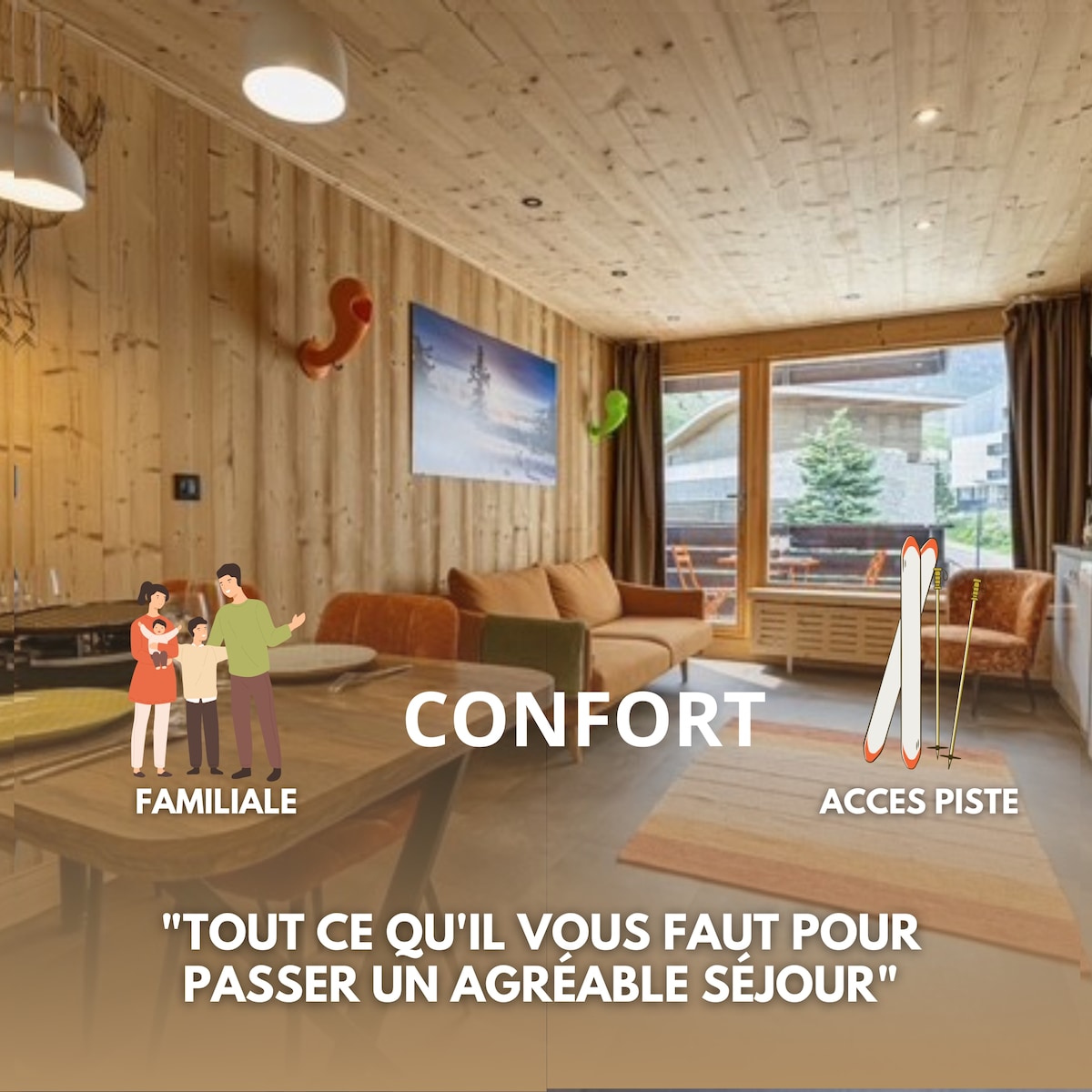 Soyez les premiers à venir profiter de ce magnifique appartement de 53 m², entièrement rénové en juillet 2024. Hiver ou été, en famille ou entre amis, notre appartement sera vous séduire de par son emplacement, son style et son confort. Excellente situation, à 300 mètres des pistes (3min à pied ),retour ski aux pieds, 10 minutes du lac à pied, accès facile au commerce. Vous serez séduit par son incroyable luminosité grâce à son exposition Sud-Ouest sans vis-à-vis. Location du samedi au samedi