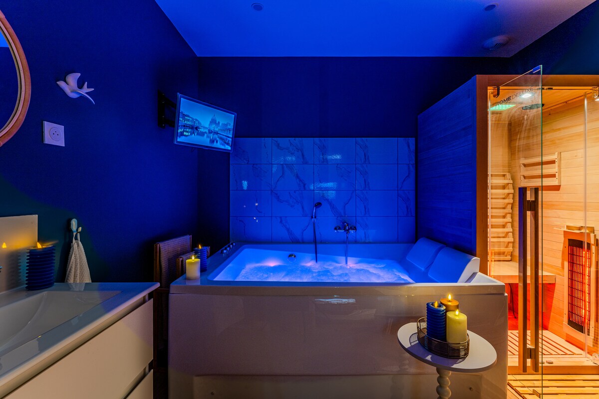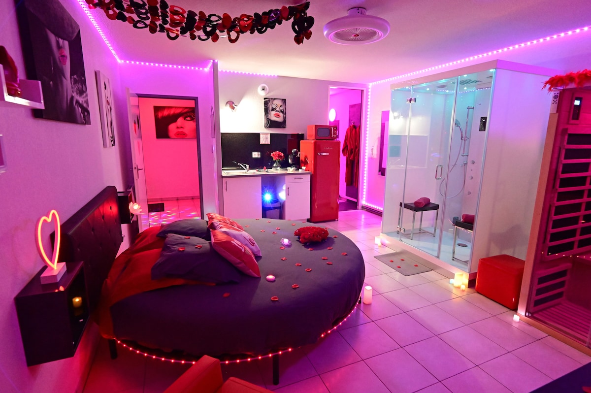 Pobjegnite kao par u ovom zadivljujućem romantičnom apartmanu nedaleko od okeana! IZNENAĐENJE JE ZAGARANTOVANO Samostalni dolazak diskretno Uživajte u našim privatnim sadržajima samo za vas u apartmanu. Dostupno kad god želite... Veliki LED tuš za 2 osobe i hidromasažne mlaznice Infracrvena sauna za 2 osobe Kada za 2 osobe (NIJE SPA ILI JACUZZI) s vodopadom i pjenušavom kupkom Vibrirajuća stolica za opuštanje Svijetla atmosfera WI-FI + ET KLIMA UREĐAJ