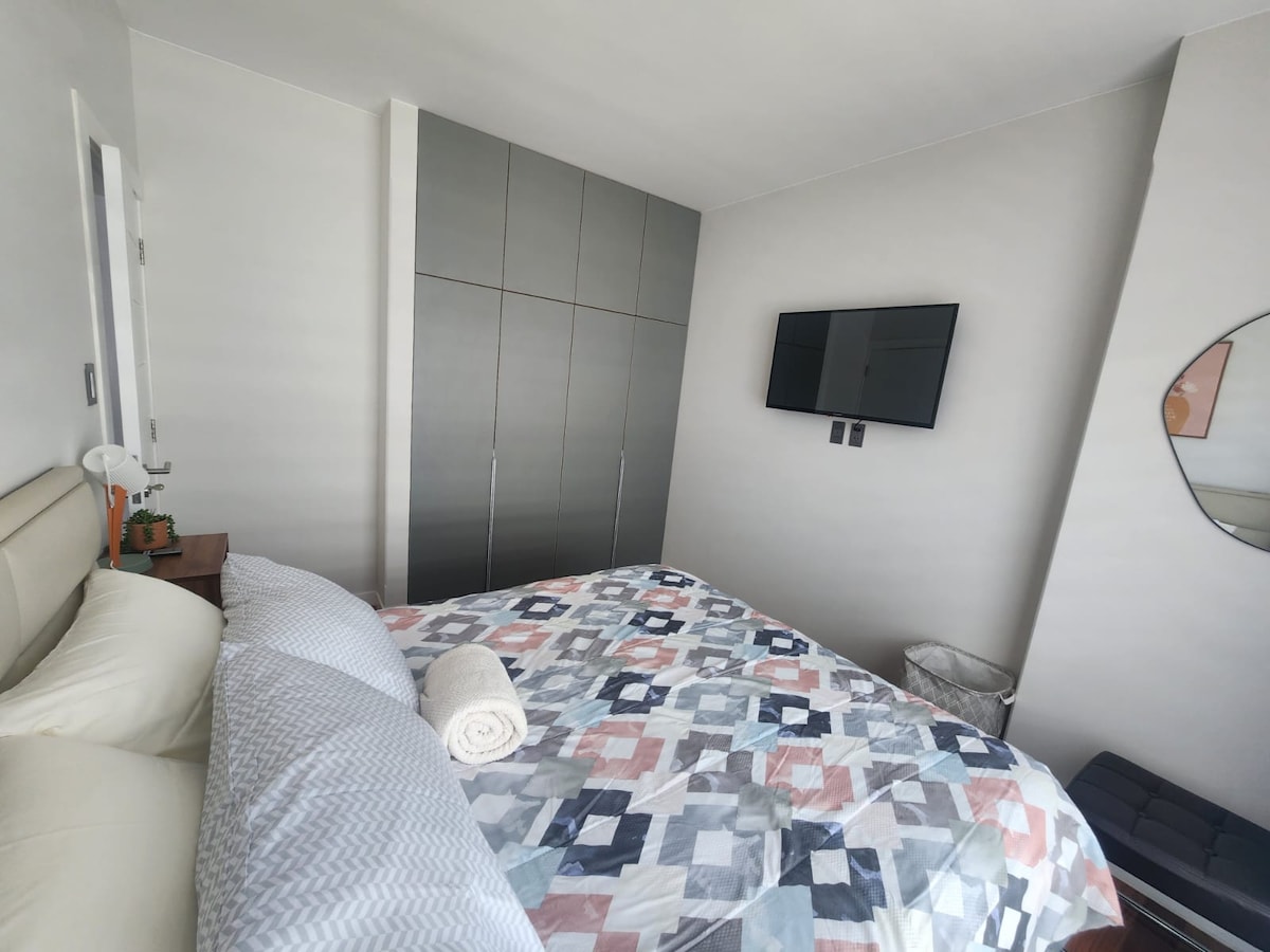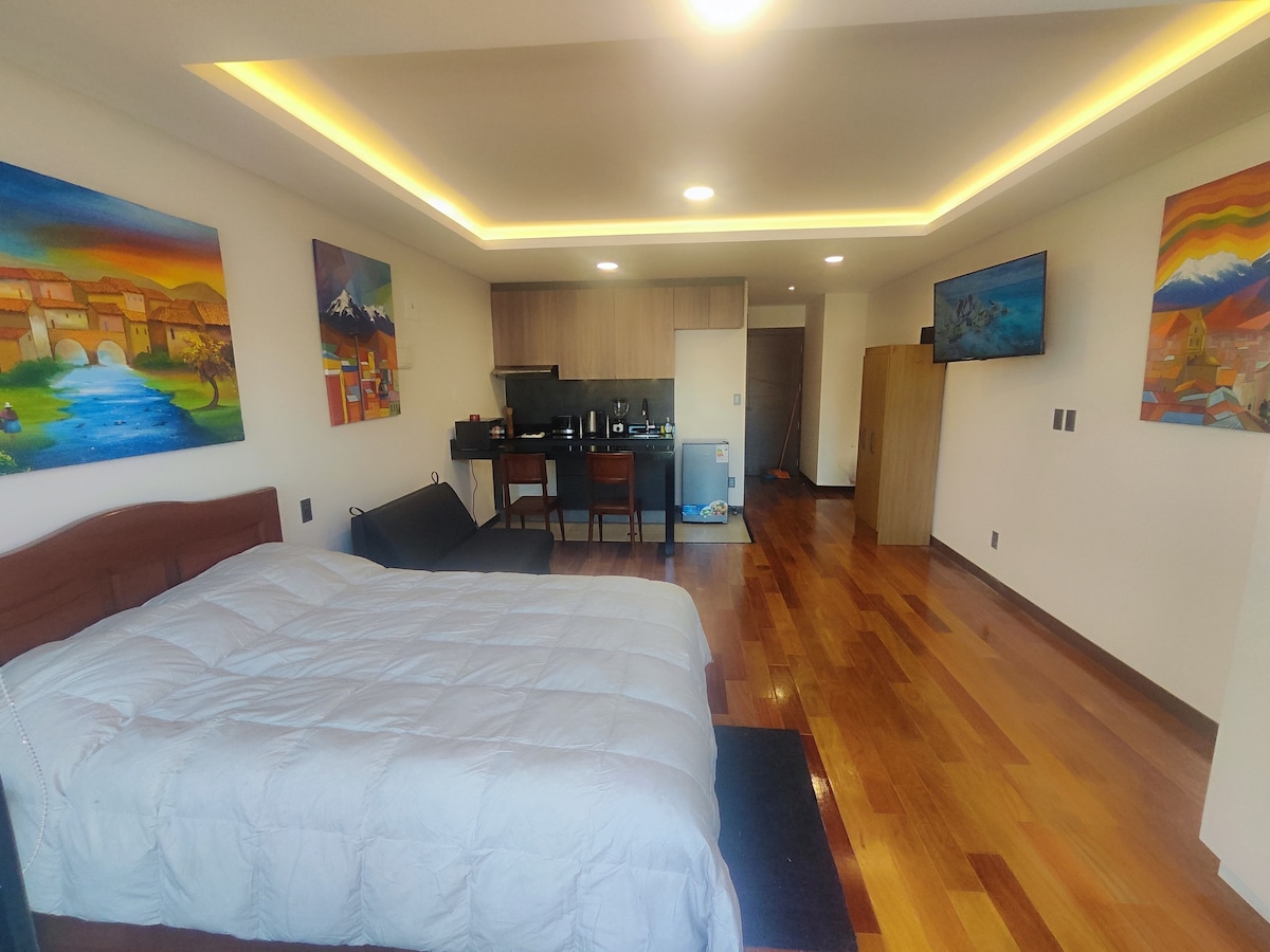 Otkrijte Sopocachi iz mog osunčanog stana! Na samo nekoliko koraka od supermarketa, restorana, teretana. Uključuje spavaću sobu, kupatilo, potpuno opremljenu kuhinju, udoban dnevni boravak. Ostanite povezani uz Smart TV, Wi-Fi. Sigurnost 0-24, ekskluzivni pristup zgradi. Kontinuirana pomoć tokom boravka. Rezervišite sada za autentičan doživljaj u ovom živopisnom okruženju! Radujemo se što ćemo vas ugostiti!