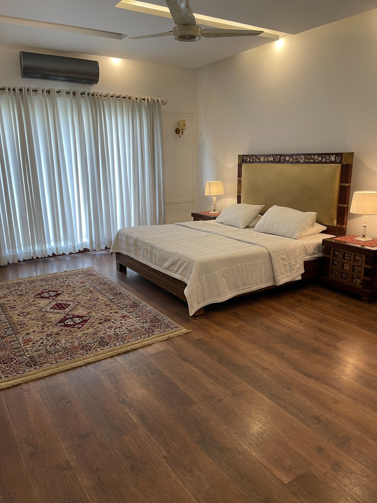 Stay at home away from home in this private 2-bed suite of a charming family owned farmhouse on Bedian Road — 20 mins from airport, 10 mins to Fairways DHA 6 & top restaurants, 15 mins to Dolmen Mall. Two furnished bedrooms (one with attached bath & TV). Cozy living with garden views, equipped kitchen, WiFi, Smart TV & dedicated parking. Bring your family and let kids explore nature hands-on. Free introductory tour for kids to explore plants & birds. Optional chef home meals (extra menu).