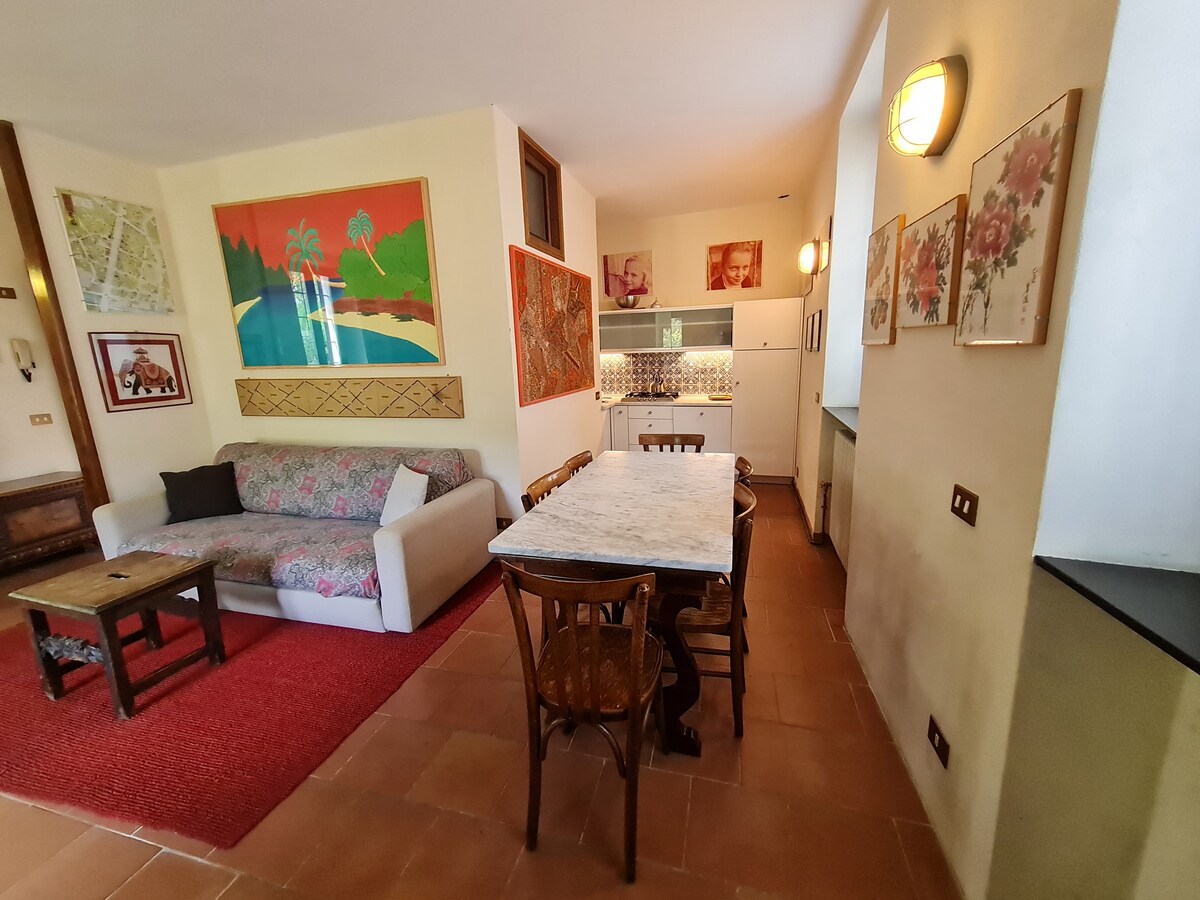 Kuća i soba imaju oko 1000 godina, unutar srednjovjekovne opatije i kamenih podova. Peć na drva u kaminu. Potpuno opremljena kuhinja i potkrovlje. Na planini Canto, među vinogradima, uronjeno u historiju i samo 45 minuta od Milana