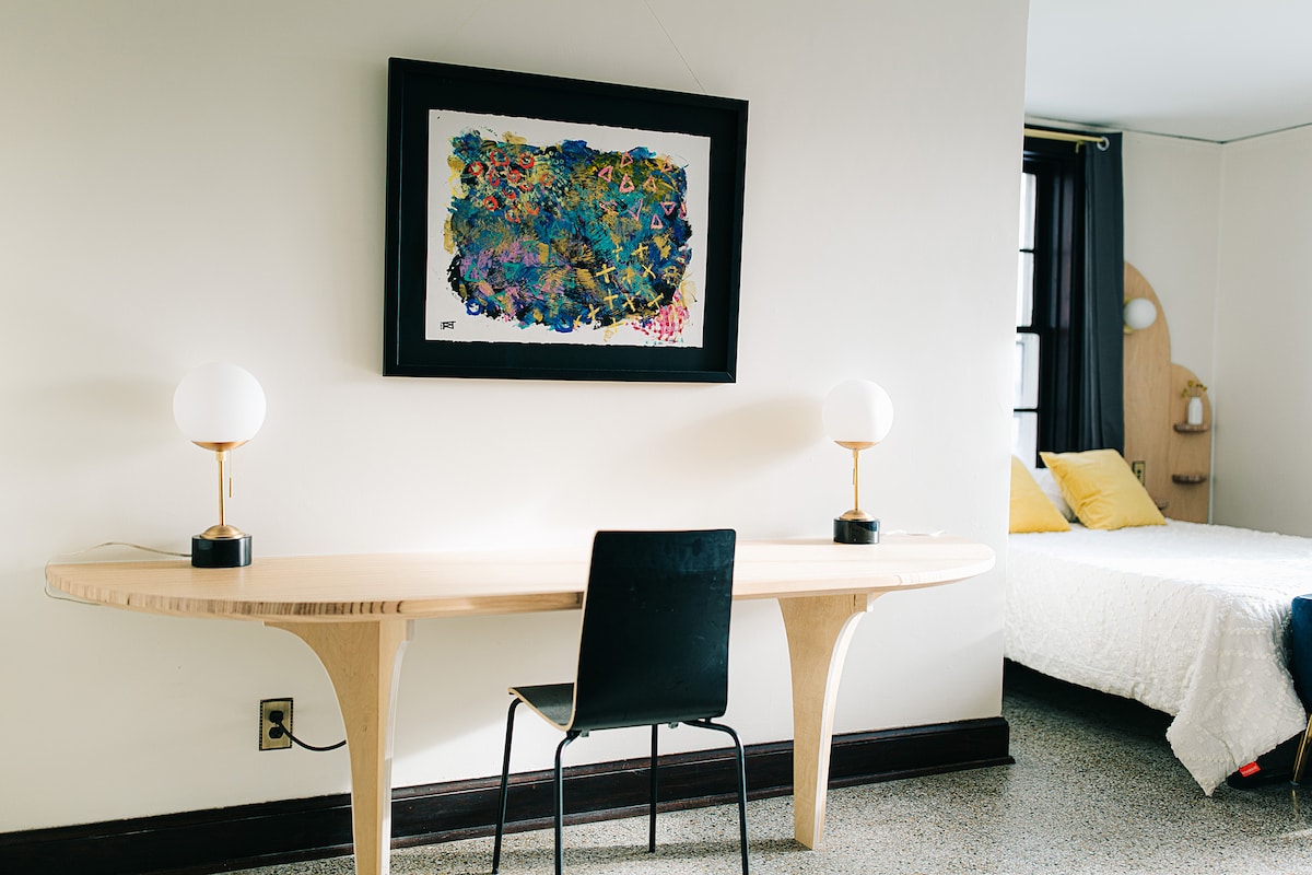 Boravite u srcu Madisona i uživajte u ekskluzivnom pristupu našem apartmanu na 3. spratu s pogledom na jezero. Nalazi se u mirnoj ulici uz biciklističku stazu Lake Loop/jezera Monona i u blizini ulice Willy (0,3 mi), Sylvee (1,1 mi), Capitola (1,7 mi), Monona Terrace (1,6 mi) i kampa Randall (3,3 mi). Samostalni dolazak s digitalnom bravom i dovoljno parkinga. Wi-Fi je veća od brzine preuzimanja/učitavanja od 500 Mbps. #ZTRHP1-2022-00022 Napomena: Loft se pristupa sa 3 sprata stepenica! Prostor ima samo kafić (bez kuhinje).