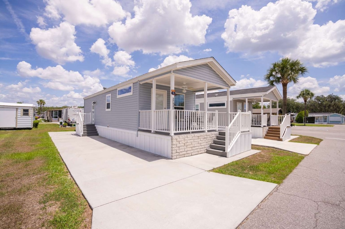 Naša udobna, moderna kućica za odmor je smještena u mirnoj, privatnoj zajednici samo 6,5 km od Walt Disney Worlda i blizu svega što Orlando nudi. Visoko ocijenjen od strane prethodnih gostiju (skoro 200 recenzija s pet zvjezdica), poznat je po čistoći, udobnosti i promišljenim detaljima. Koliba ima spavaću sobu s bračnim krevetom (160–179 cm), udoban dnevni boravak, kupatilo i potpuno opremljenu kuhinju s novim aparatima. To je privlačan i pouzdan dom u kojem možete uživati u čaroliji i suncu centralne Floride.