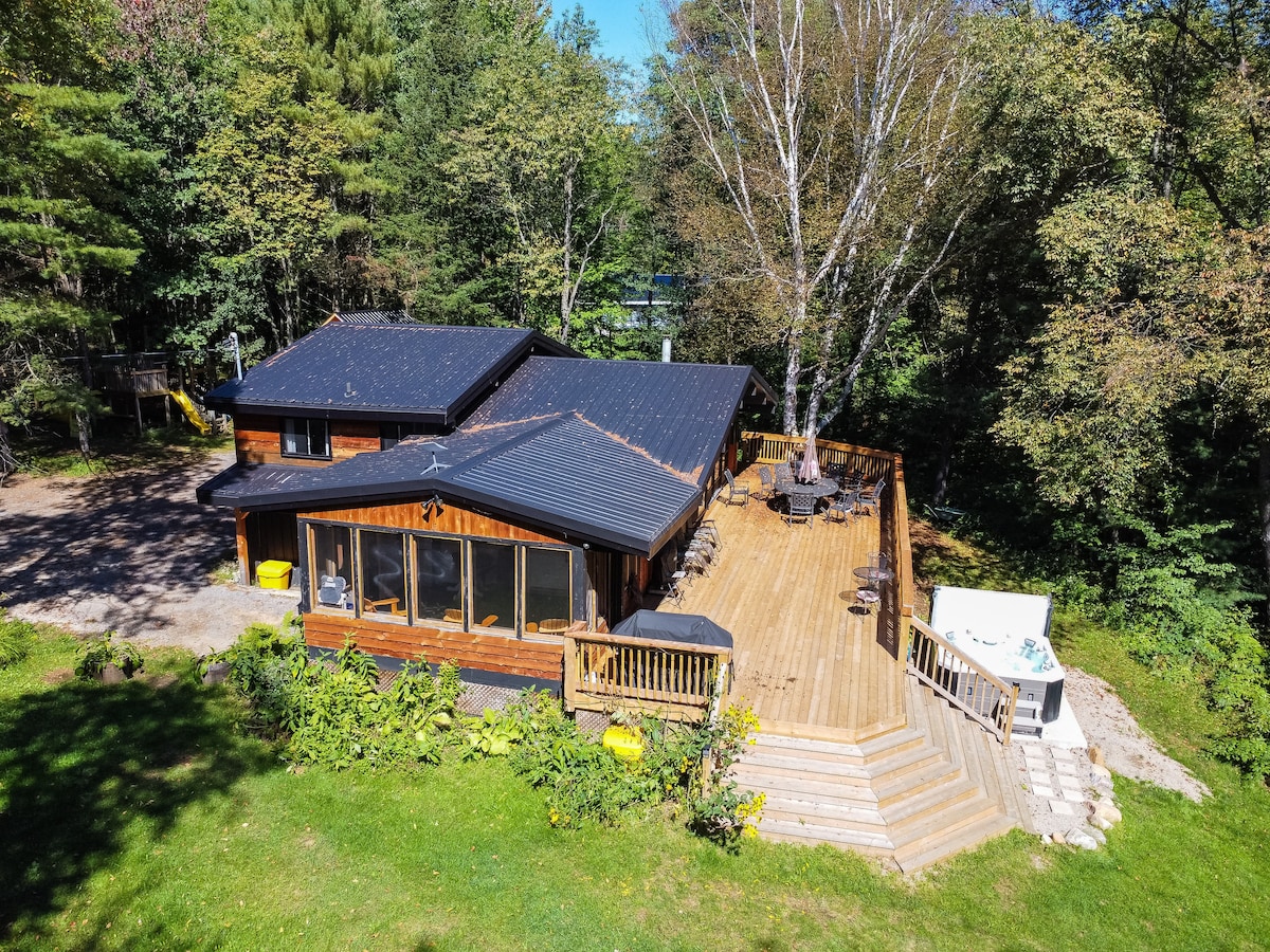 Moderna planinska kuća s 4 kreveta i 2 kupatila s BELL FIBE brzim internetom i novom masažnom kadom za 6 osoba s 49 mlaznica, udaljena samo 5 minuta od skijališta Mt St Louis. Kuhinja/trpezarija/dnevni boravak otvorenog koncepta prelazi u ogromnu terasu s pogledom na šumu. Savršeno za parove, avanturiste, porodice i grupe. Uživajte u privatnim stazama, skijanju, hodanju po snijegu, biciklizmu/planinarenju, bilijarskom stolu i još mnogo toga. Dobro vaspitani psi su dobrodošli. Za lokalne aktivnosti, pretražite „The Chalet Moonstone” na YouTubeu.
