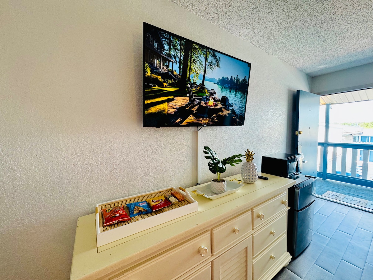 Ova novouređena motelska jedinica nalazi se u glavnoj poslovnoj zgradi i uključuje 1 bračni krevet i kauč na razvlačenje. Svaka jedinica uključuje frižider, mikrovalnu pećnicu i aparat za kafu, kao i kupatilo. Ove motelske jedinice nemaju pogled na jezero. Sve jedinice u ovoj zgradi su bez dima, vapea i kućnih ljubimaca.