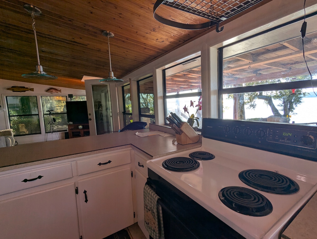 Opustite se u ovom mirnom i elegantnom prostoru. Uživajte u prekrasnom pogledu na jezero iz prostrane dnevne sobe, kuhinje/ trpezarije. Kuhinja je opremljena svime što vam je potrebno za pripremu omiljenog obroka. Gledajte dobar film dok se zagrijavate do udobnog kamina. Igrajte konkurentnu igru bilijara dok uživate u tom nevjerovatnom pogledu. Opustite se u ljuljački na krevetu uz dobru knjigu ili sjednite na pristanište i uživajte u nevjerovatnim zalascima sunca. Oduševit ćete se na pristaništu; pruža vam osjećaj da ste na kući na brodu.