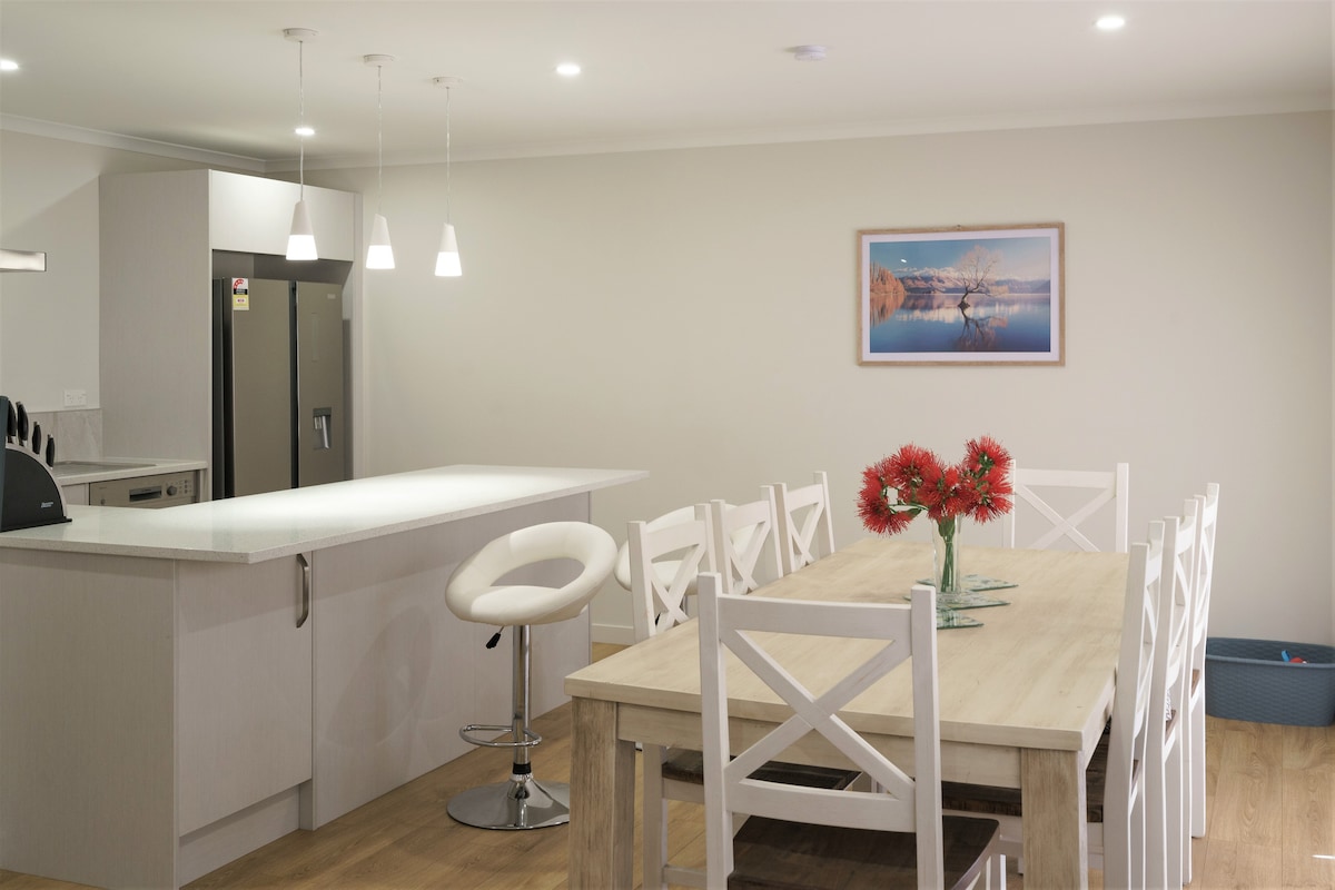 Ova ljupka popularna kuća na dva sprata je pristupačna, čista, udobna, topla, prikladna za porodice i prostrana. Uključuje besplatan Wi-Fi (vlakna) i posteljinu. Nudimo fleksibilne uslove otkazivanja, posebno tokom zaključavanja. Kuća se nalazi na mirnoj zapadnoj strani grada s pogledom na Ben Ohau i okolne planine. Jedinstven je i jednostavan - životni dizajn čini ga elegantnim, ali domaćim. Ima veliko potpuno ograđeno stražnje dvorište s namještenim dvorištem i roštiljem.