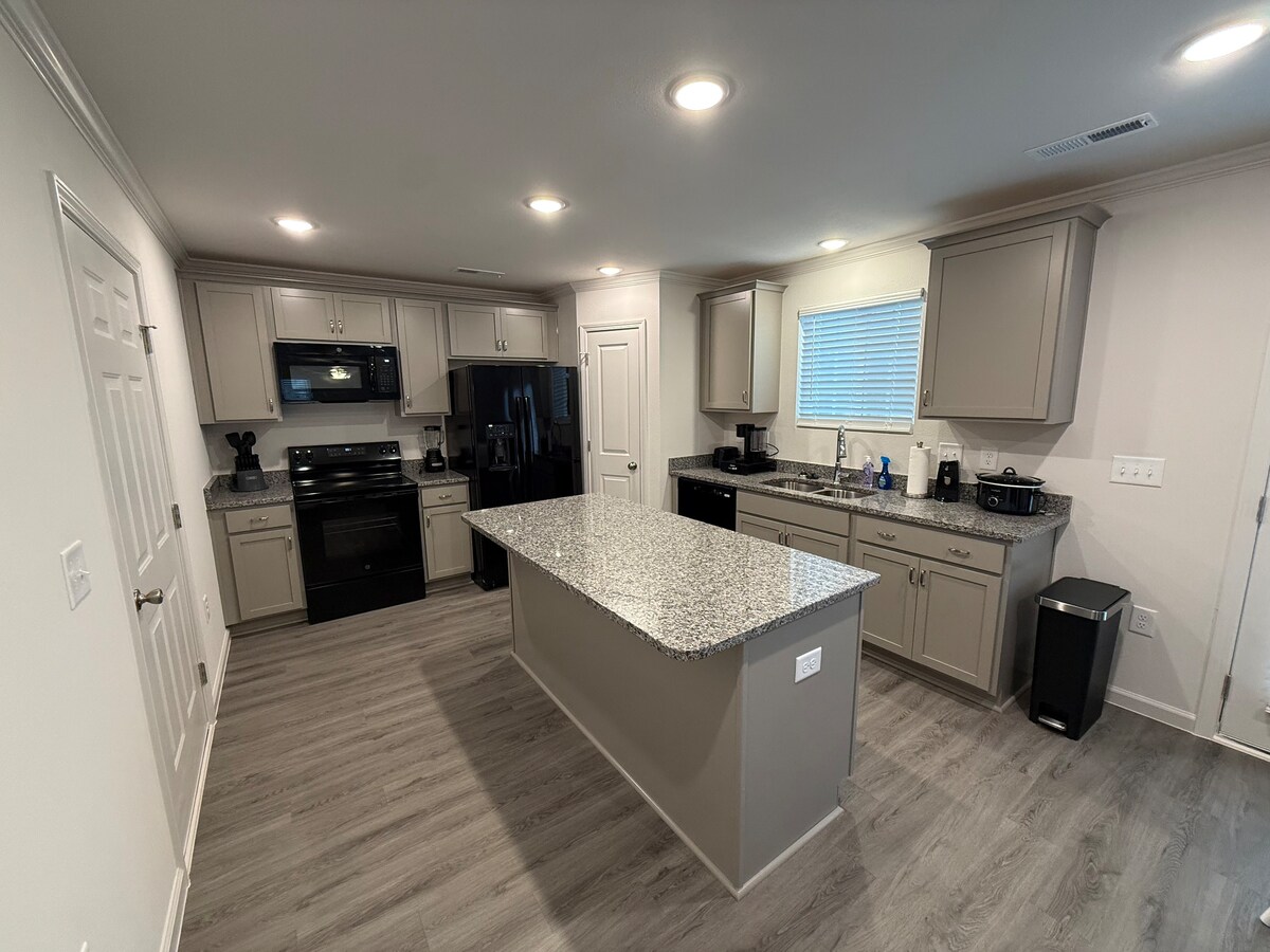 Smješten samo 1,3 milje od kampusa Univerziteta Elon na University Drive~Interstate 40/85 je udaljen 5 minuta ~ U blizini šopinga i lokalnih restorana~Corner Lot u malom kvartu ima 6' Privatno ograđeno dvorište~Kućni ljubimac ~ Stražnja terasa ~ Sve novo LVP ~ Bez tepiha ~ Svježe oslikano ~ Ukusno uređenje~mekana memorijska pjena madraci, King & 2 Queen kreveta~Novi Samsung TV u svim spavaćim sobama i dnevnom boravku ~Mašina za pranje i sušenje~ Zavjese za zamračivanje u spavaćim sobama~ Paletni lokalni domaćin~Spreman da imate sjajan boravak!