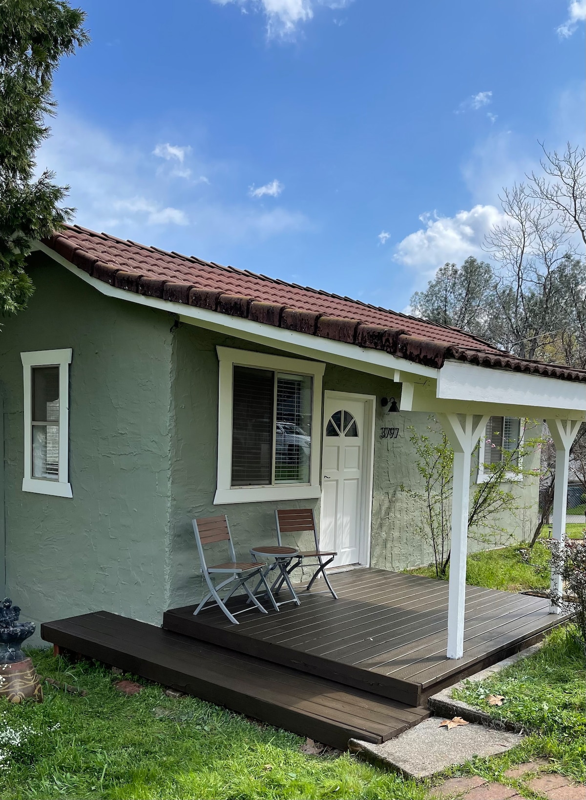 Escape to authentic country living in a serene rustic studio guesthouse tucked into the hillside along a quiet rural road. Unwind in peaceful seclusion: gaze through large windows across the yard, listen to evening crickets, and stargaze right from your door. It’s the perfect quiet retreat, just minutes from Shasta Lake adventures, hiking, and North State attractions. (Details on bathroom below.)