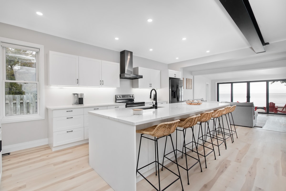 Opustite se u ovoj modernoj kući na jezeru smještenoj na jezeru Erie. Kuća je izgrađena s visokim stropovima i izloženim detaljima od sirovog čelika. Uživajte u zapanjujućem pogledu na jezero Erie iz obje spavaće sobe ili kroz stakleni zid od 6 metara u dnevnom boravku. Kuhinja se može pohvaliti svim novim uređajima, radnim površinama od kvarta i svim potrebnim kuhinjskim potrepštinama. Kuća se nalazi između dvije javne plaže i nudi vlastiti pristup jezeru. Vinarije, Pelee Island, restorani i golf tereni.