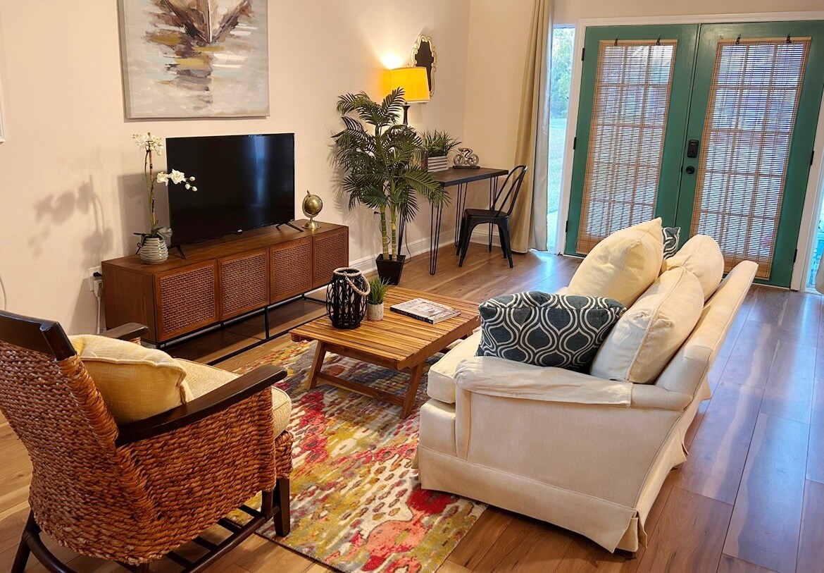 Ova udobna kućica na plaži nudi miran boravak u srcu Pass Christiana. Samo kratka šetnja do plaže, restorana, kafića i lokalnih barova, savršeno je za parove, male porodice ili radnike na daljinu. Pelican's Nest je dio željene zajednice Cottages at 2nd Street i nudi jednostavan samostalni dolazak, potpuno opremljenu kuhinju, brz Wi-Fi i namjenski radni prostor. Opustite se, istražite obalu i uživajte u udobnom i praktičnom utočištu u blizini svega.