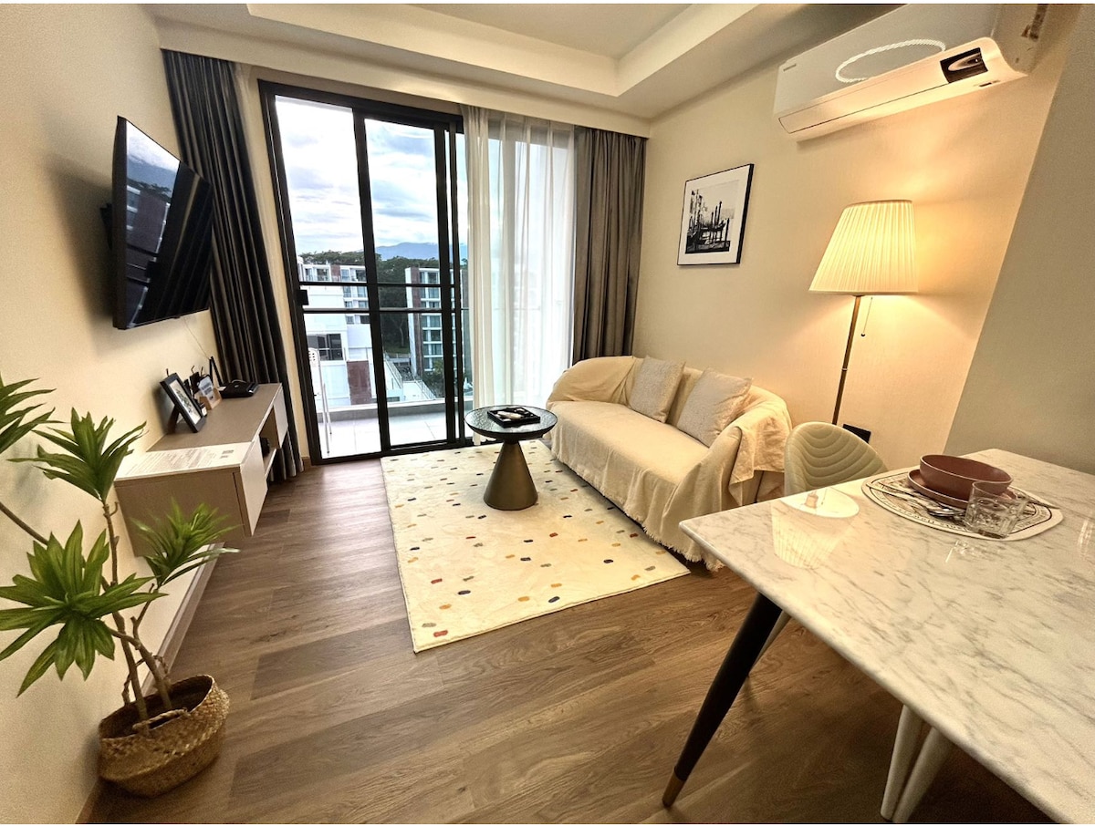 - 1 BR stan, odvojena dnevna i spavaća soba, svijetlog dizajna, udoban, čist prostor, privatni balkon, pogled na cijeli grad. - NOVI 43-inčni pametni TV, NOVA mašina za pranje veša, brzi Wi-Fi, oprema za kuhanje, dva klima-uređaja, lijepo i cool. - Pristup nevjerovatnom nebeskom vrtu, beskonačnom bazenu s pogledom na planine, sauni, sauni, teretani s pogledom na Doi Suthep. - Sigurnost 0-24, besplatan parking, jednostavan pristup svemu. - 1 minut vožnje do Noćnog bazara, 2 do rijeke, 4 do Starog grada, 10 do Nimmana, aerodroma, autobusa i voza.