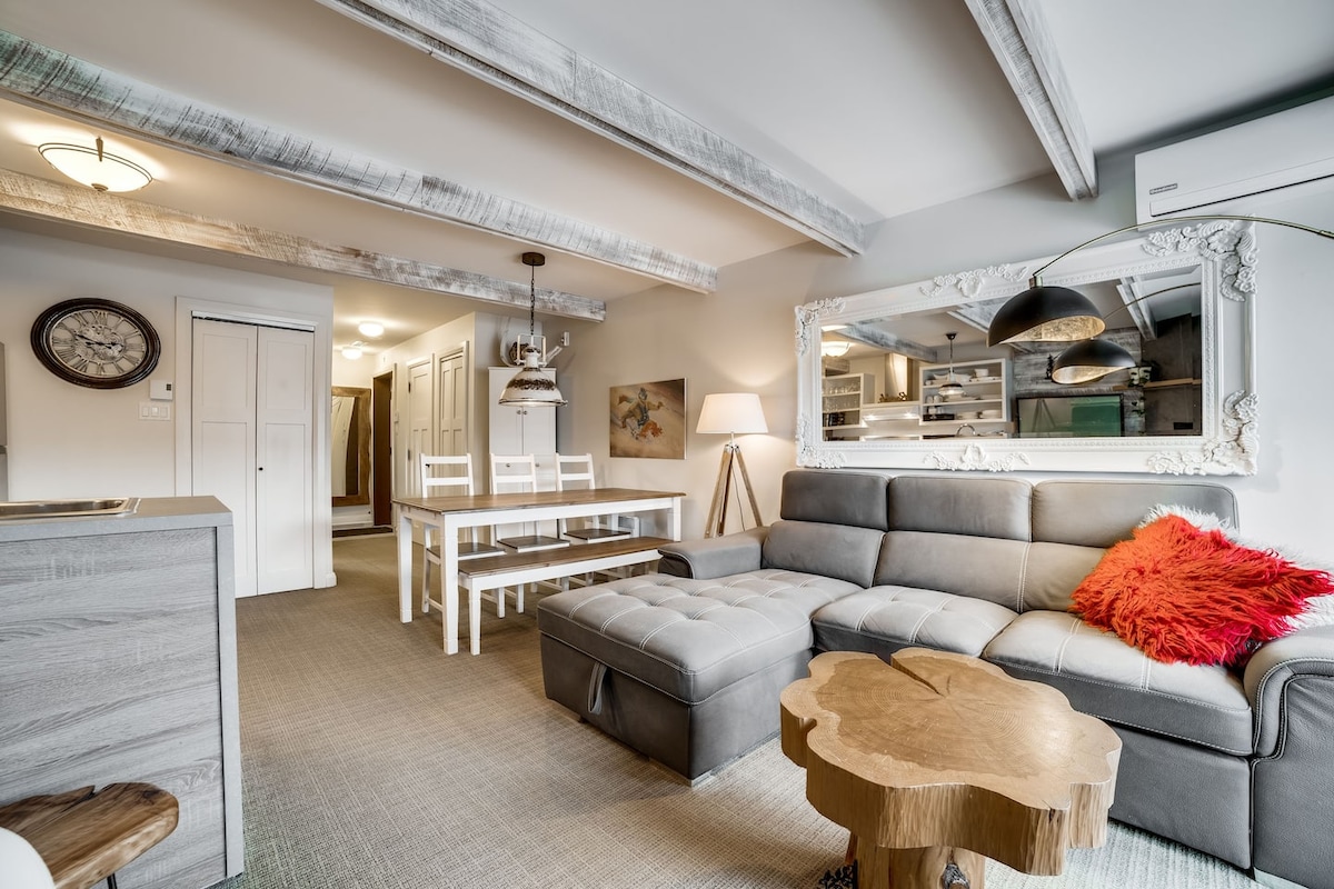 Najbolja cijena za vrijednost ㋛ * U blizini planinskog odmarališta* Nalazi se u starom selu Cijeli moderni studio je ukusno namješten,kompletna kuhinja s novim uređajima,privatni veliki balkon, parking. Prenosna klima-uređaj Brzi neograničen Wi-Fi+ 4K TV U roku od 10 minuta vožnje do: • Odmaralište Tremblant Village za skijanje,planinarenje,kupovinu,vožnju biciklom, restorani,kazino,spa. •Pješačka udaljenost :parkovi,biciklističke staze,jezera,butici, restorani,kafić (zajednički bazen/masažna kada tokom ljeta/jeseni) Rezervišite kako biste u potpunosti doživjeli doživljaj Mont-Tremblant ㋛