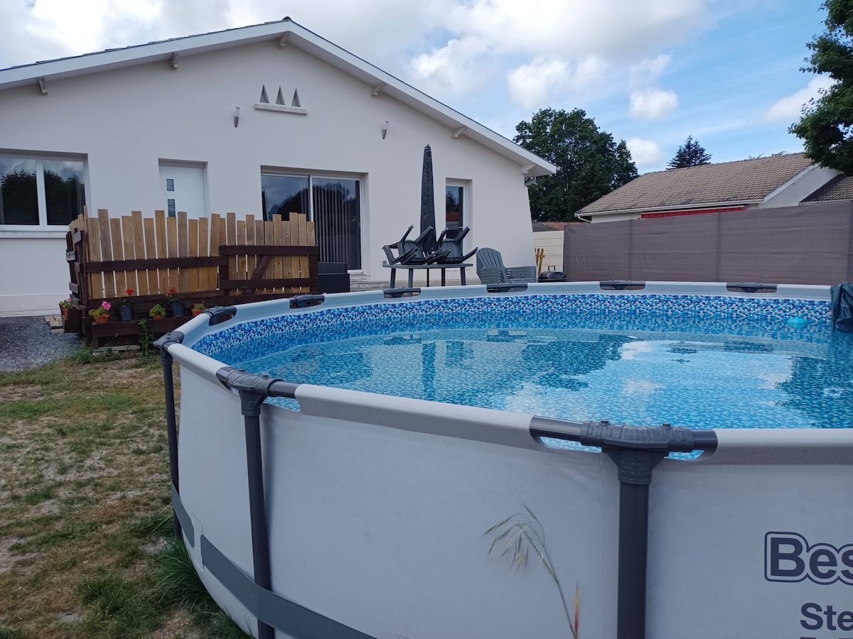 Klimatizirana čaura, 25 minuta hoda do južnog jezera i centra grada. Udobna soba, krevet 160x200 i otvoreno kupatilo s velikim tušem Odvojeni WC Topao smještaj s kaminom na etanol, TV-om i Wi-Fi mrežom Otvorena i opremljena kuhinja: pećnica, mikrovalna pećnica, mašina za pranje suđa... Balkon na spratu sa klupom i stolom Terasa u prizemlju Kuća podijeljena na 2 smještaja Biciklistička staza od 900 metara i pješačke staze ispred Wellness područje „ spa des lacs” u sklopu objekta