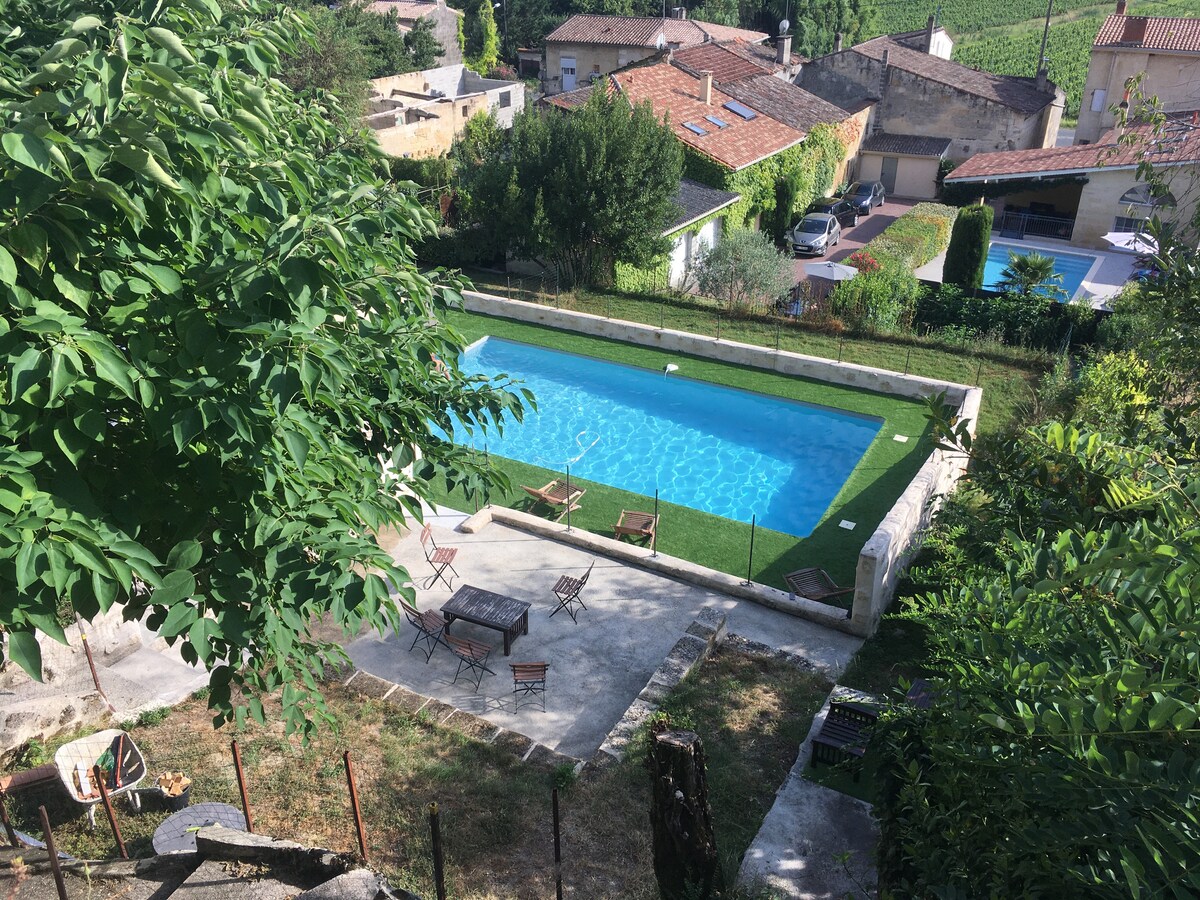 U podnožju tvrđave iz trinaestog vijeka, u srcu vinograda prvih obala Bordeauxa, dočekujemo vas na starom imanju iz 1860. godine koje je u potpunosti renovirano. Gosti mogu iskoristiti bazen (privatan za goste), privatnu terasu (sa stolom za 4 osobe, roštilj) , ograđenu baštu s drvećem , mini golf zelenilo. Parking se nalazi u dvorištu i siguran je. Mi smo dvojezični (engleski) i moći ćemo vam pomoći da upoznate regiju.