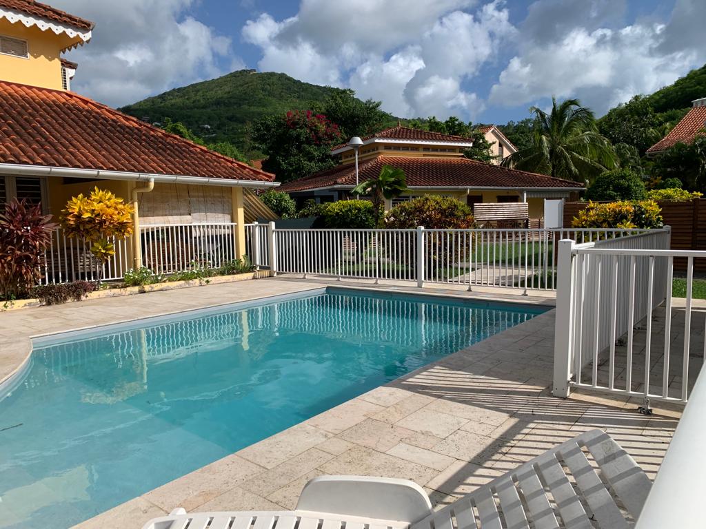 Potpuno opremljen stan T2 površine 35 m2 s bazenom 300m od lijepe plaže Anse à l 'âne. Idealno smještena na drugom i posljednjem spratu mirne i sigurne luksuzne rezidencije s bazenom (održavana 3 puta sedmično), velikim zelenim površinama, igralištem za kućne ljubimce, dječjim igrama. Plaža (bez sargassea) i prodavnice na udaljenosti od 5 minuta hoda. Privatno parking mjesto. Vrlo jasna i prozračena, natkrivena terasa s lijepim pogledom