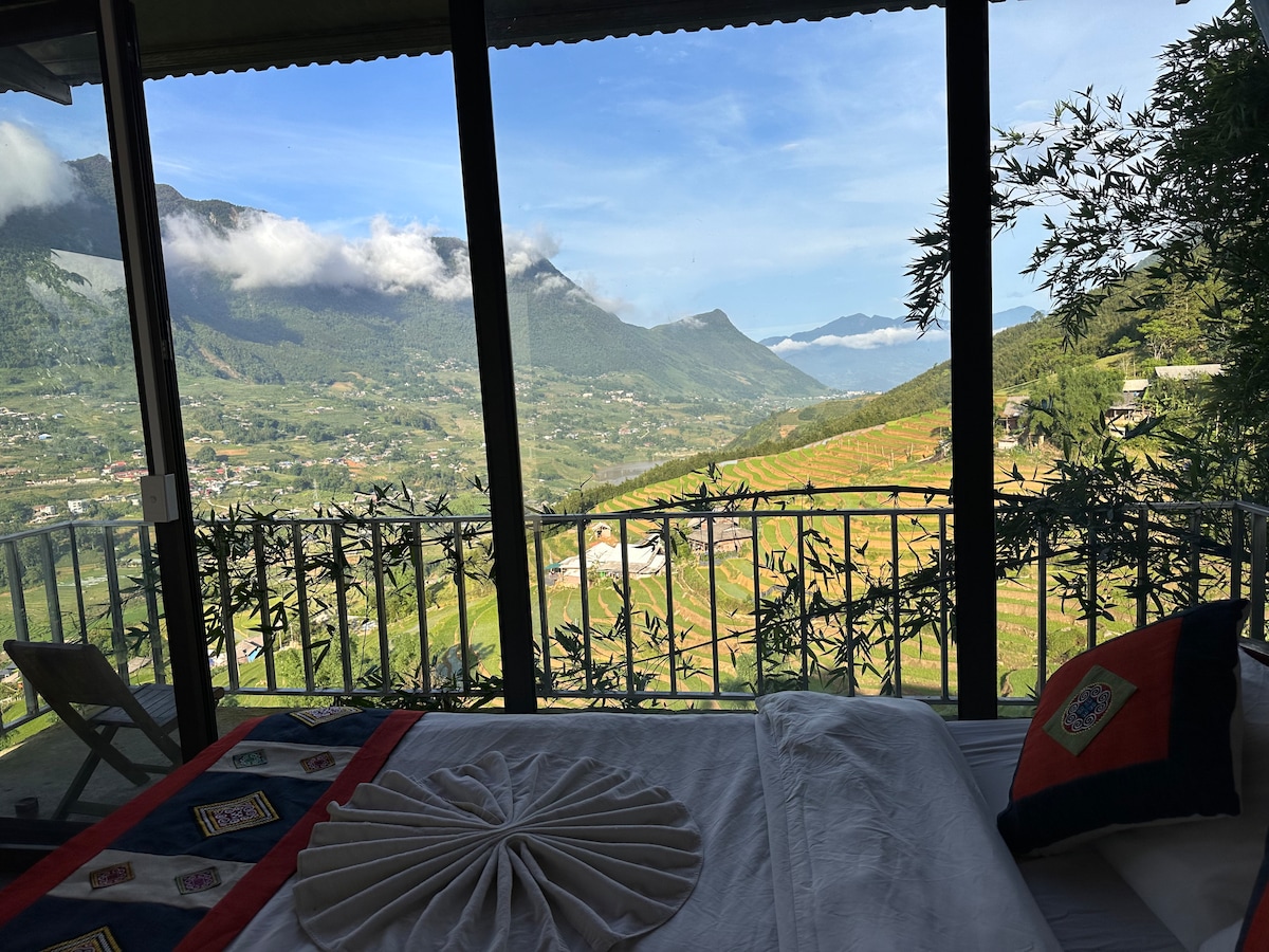 Opustite se u ovom jedinstvenom i mirnom smještaju. Kuća ima pogled od 180 stepeni na cijelu dolinu Muong Hoa, posmatrajući terasasta polja, posmatrajući planine Fansipan, posmatrajući oblake koji okružuju dolinu. Domaćini žive u smještaju i spremni su pomoći gostima kada je to potrebno.