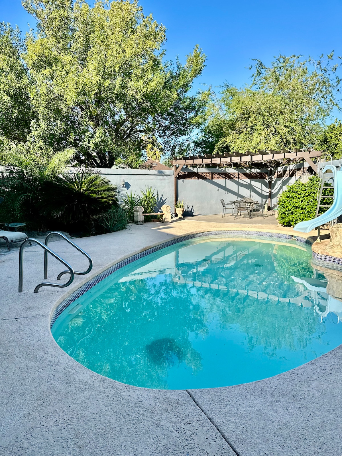 Discover comfort and charm in this cozy 1BR/1BA guest house in Laredo’s Mines Road area. Enjoy a relaxing Water fall in the pool and a tropical like surrounding after Work. Perfect for solo travelers or couples, it features a comfy queen bed, plush sofa, and fully equipped kitchen with stainless steel appliances. Enjoy free Wi-Fi, Smart TV, and private parking. Just minutes from shopping, dining, and major roads, this peaceful retreat offers convenience and relaxation for work or leisure stay.