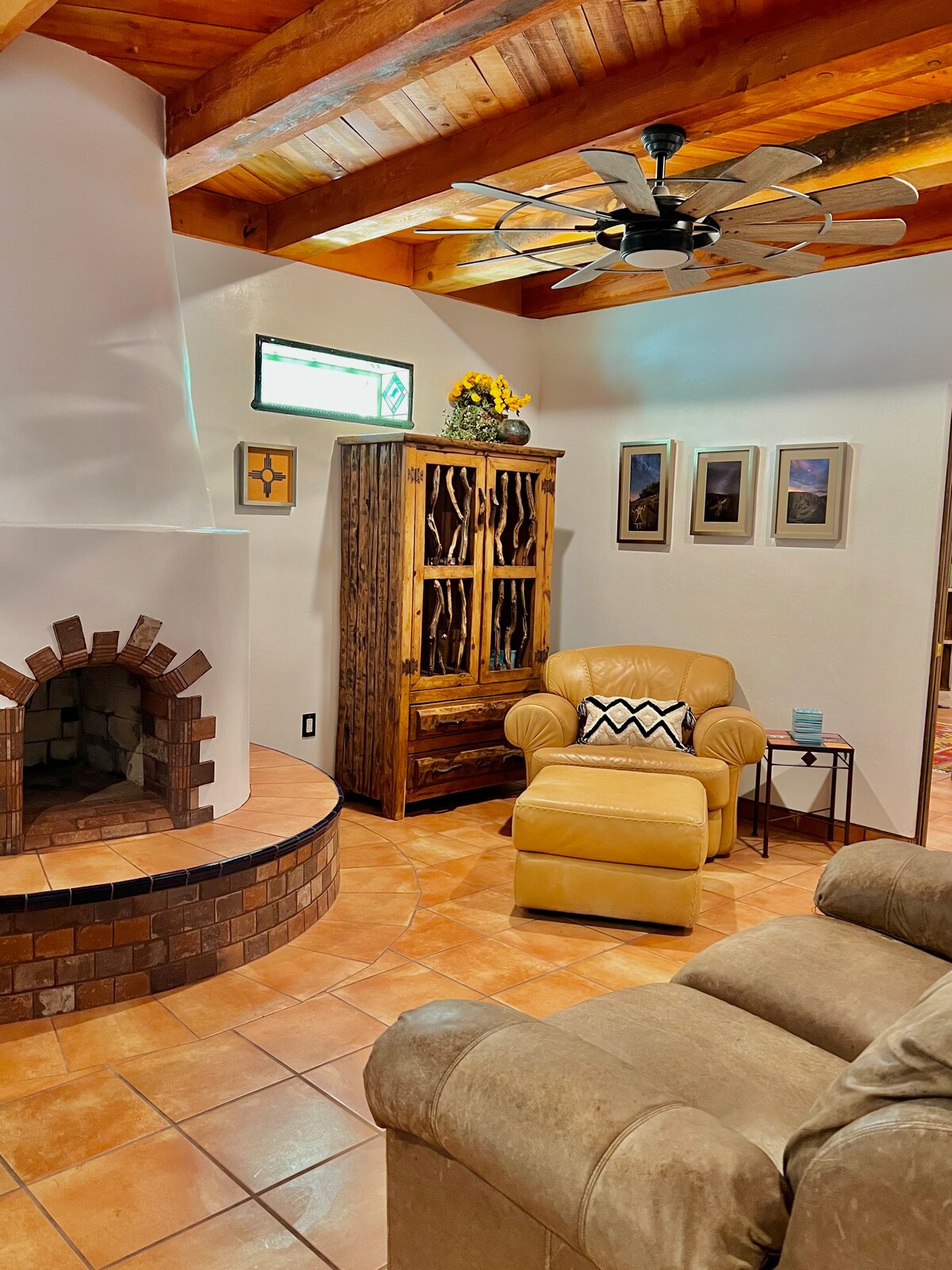 Cozy casita just steps from Old Mesilla’s historic plaza and coffee shops. Unwind in your private courtyard with a hot tub, or curl up by the fireplace inside the guesthouse. A kitchenette adds comfort for longer stays. Mesilla Bosque State Park by the Rio Grande is only 4 minutes by car—or a short bike ride—perfect for birdwatching, sunsets, and peaceful walks. The ideal spot for a romantic getaway or quiet retreat.