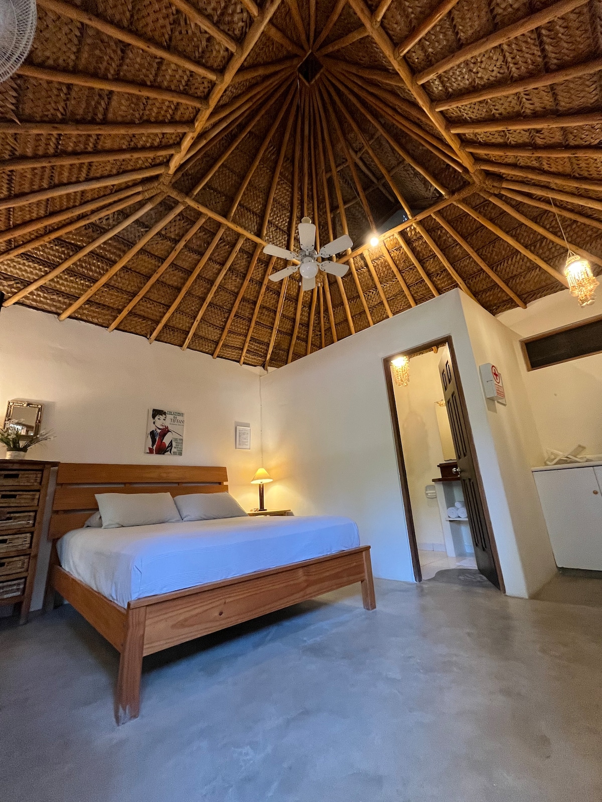 Ekskluzivna brvnara za dvije osobe, dizajnirana za potpunu harmoniju između radosti tropskog vrta, privatnosti velikog imanja i blizine mora. Smješten na brdu s pogledom na okean, u mirnom stanu Guadalupe, 7 minuta od plaže. Zapanjujuća spavaća soba od 20 m² s bračnim krevetom (king size), radnim stolom i pametnim TV-om. Prostrano kupatilo s masažnom kadom. Poluotvoreni prostor za kuhinju i dnevni boravak. Starlink Wi-Fi, privatni parking, 24/7 osiguranje i jednostavan pristup mototaksiju. Savršeno za parove koji traže autentičnost i prirodu.