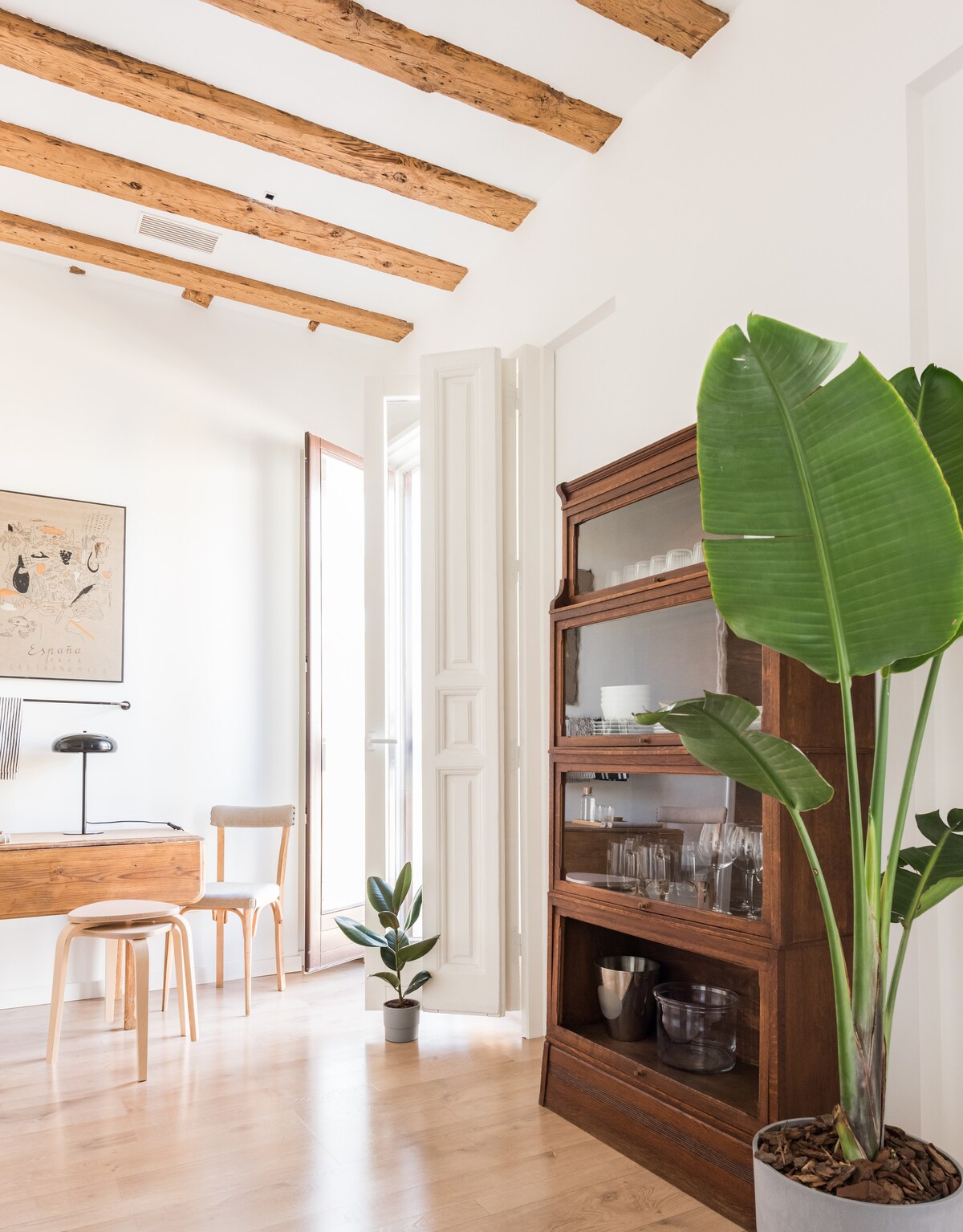 Open tall wooden shutters and let morning light stream into a room with exposed timber framing and whitewashed brick walls reaching to high ceilings. Have breakfast in a cheerful open space at a sunny table in front of an elegant fireplace. I have several apartments in Madrid, but this is the latest one I have decorated, paying close attention to detail. I have truly tried to make it as comfortable as possible for my guests. It has lots of light and it's beautiful. If one were to read my reviews they would notice that I care a lot for my guests, I am always readily available, and I try my best to make them feel at home when they are in Madrid. You will have the whole apartment. We will be there in person to meet you, and give you the keys. After you book, I give you my number and you can text or call if needed. The apartment is in Chueca, one of the nicest and trendiest neighborhoods in Madrid. Walk to the main street, Gran Via. It's near the Prado, Puerta del Sol and Parque del Retiro. It's surrounded by wonderful places to have tapas and a glass of wine. We are about a block away from the Gran Via, you can walk everywhere, but we also have metro stations and buss stops nearby. If you are coming with a car, there is a Public Parking Garage about 2 minutes walking from the apartment.