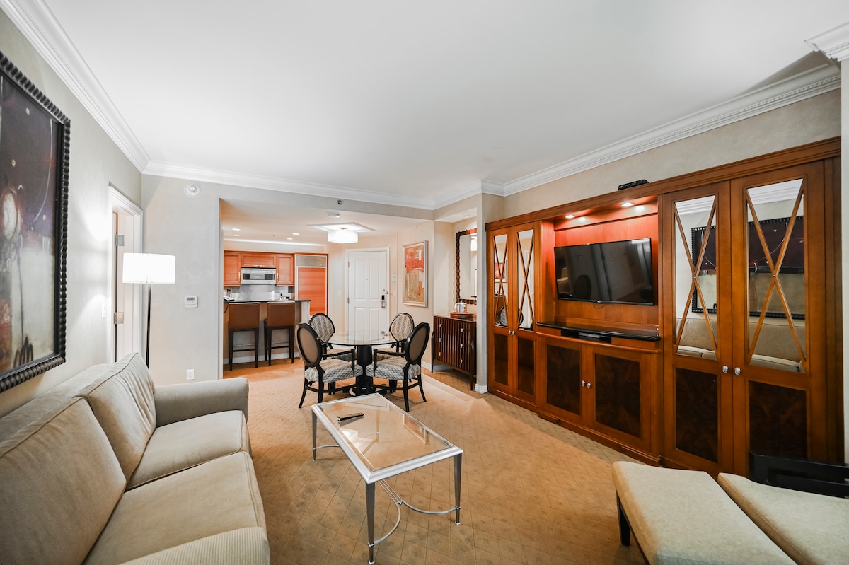 Ovaj luksuzni studio s pogledom na balkon nalazi se na PH spratu u The MGM Signature Towers. Potpuno opremljen čajnom kuhinjom, dnevnim prostorom s bračnim krevetom i kaučem na razvlačenje, velikim kupatilom s hidromasažnom kadom. Najbolje od svega imate pravo na pristup sadržajima i bazenima odmarališta MGM Grand i Signature. BESPLATAN PARKING /BEZ NAKNADE ZA ODMARALIŠTE!!