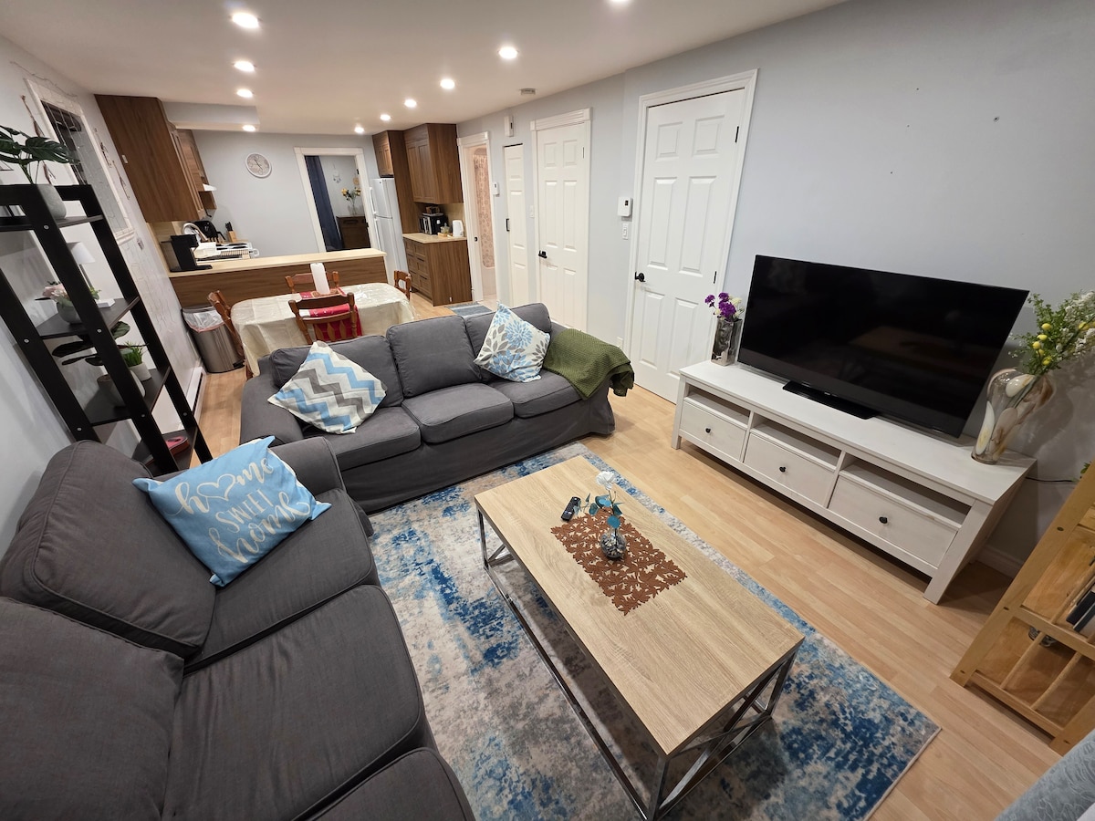 Bienvenue dans notre chaleureux sous-sol complétement rénové situé dans le quartier résidentiel Duvernay, Laval. Vous disposerez d’une entrée privative, de deux grandes chambres confortables, d'une salle de bains moderne, d'un coin salon, et d’une cuisine entièrement équipée. Situé à moins de 30 minutes du centre-ville de Montréal, 15 minutes de la place Bell, 7 min du Centre de la nature, 35 min du Mont St-Sauveur et 1 h 15 de Mont-Tremblant. Accès à tous les services à proximité.