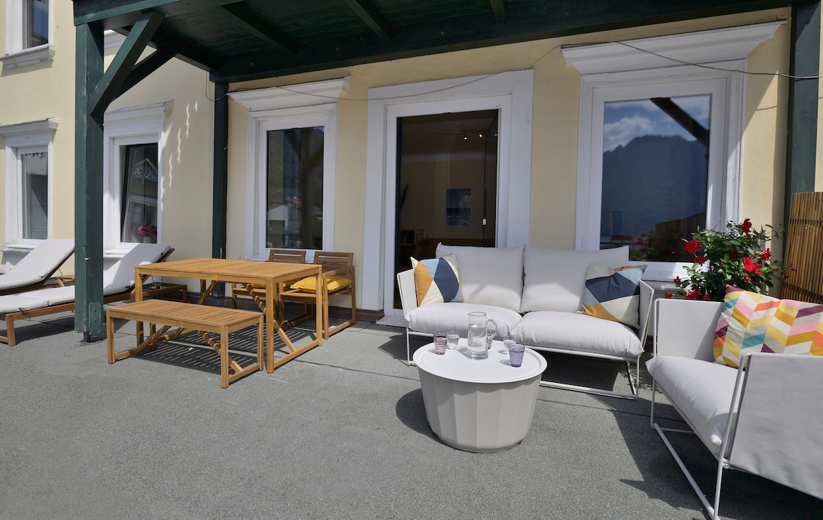 Loft im Atelier Dieses stylishe, gemütliche Loft in Etienne's Atelier liegt am Waldrand etwas außerhalb von Bad Ischl. Kunst- und Naturliebhaber kommen hier voll auf ihre Rechnung. Gehe auf Tuchfühlung mit dem Künstler Etienne, der im Erdgeschoß des Ateliers malt. Die Aussicht auf die malerische Bergkulisse ist berauschend. Von der Terrasse auf der Ostseite, kannst du beim Frühstück die Morgensonne genießen und hast einen wunderbaren Blick auf den Garten mit Teich und Grillplatz.