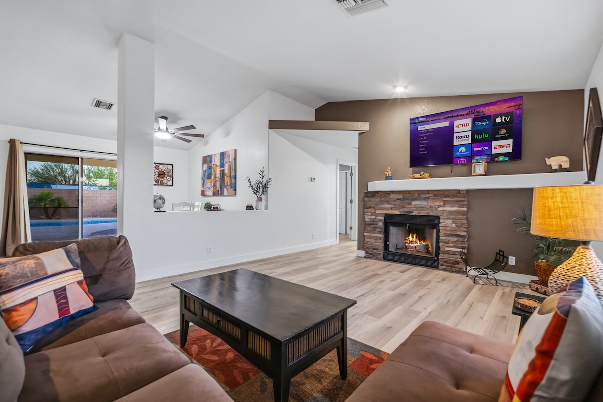 Dobro došli u našu pustinjsku oazu. Imamo savršeno mjesto za vas!! Uživajte u danu na jezeru, poslijepodne na britvi ili noći u kasinu, naš dom je pravo mjesto za uživanje u ljepoti pustinje Arizone. Uživajte u Netflixu na TV-u od 80 inča ili salonu u odbojkaškom bazenu(3,5 strane/5 stopa u sredini). Roštilj i večera ispod natkrivene terase. Prijateljska četvrt. Mirno vrijeme: 22:00 - 19:00. Parking na prilazu i ulici (bez pristupa garaži) bočni parking za britve. bez kućnih ljubimaca, bez PUŠENJA! APSOLUTNO bez VATROMETA!!