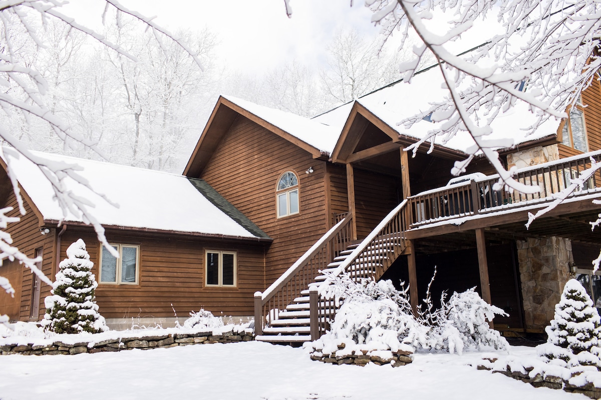 Predivno renovirana i novouređena planinska kuća koja se nalazi na sjevernom ulazu u Seven Springs. Privatno ušuškan uz laganu 3-minutnu vožnju do vrha padina za brzu dostavu na dan skijanja. Rustikalan šarm sa svježim ažuriranim ugođajem. Mnogo prostora se prostire na dva sprata, vanjski trijem i ogromna terasa završena s najsavremenijim jacuzzijem. ...Ili se sklupčajte do vatre i knjige sa kafom i uživajte u pogledu