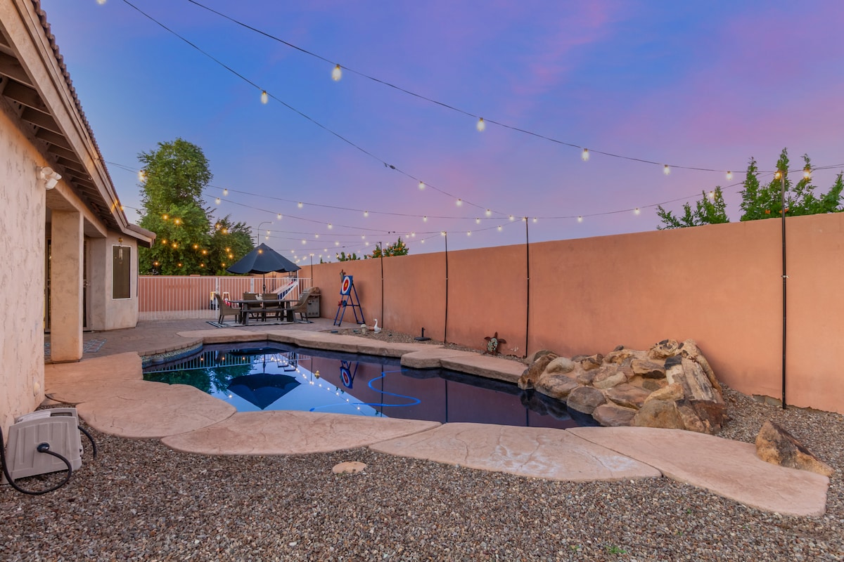 Predstavljamo vam svoj novi dom daleko od doma u Laveenu (Arizona). Smješten u srcu Phoenixa, ovaj nedavno izgrađeni dragulj s 3 kreveta i 2,5 kupatila nije samo kuća. To je doživljaj! Uronite u opuštanje uz prilagođeni bazen, uživajte u porodičnoj zabavi u igraonici i uživajte u otvorenom dnevnom boravku/kuhinji dizajniranom za zajedničke uspomene. Ovaj prostor je mjesto gdje udobnost spaja zabavu, što ga čini savršenom bazom za vaše avanture. Iznajmljivanje na 31ili više dana *** bazen NIJE grijan*** 15 minuta do DTPHX-a