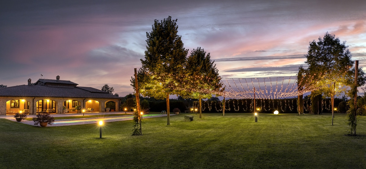 Opustite se s cijelom porodicom u ovoj vili za ekskluzivnu upotrebu okruženu zelenilom okruženom kestenima. Nalazi se pet minuta od jezera Vico, 20 km od Viterba i 60 km od Rima. Okruženi stazama prirode koje se nalaze u blizini Via Francigene i Farnese palače Caprarola. Mjesto gdje se možete opustiti u tišini prirode i gdje se možete povući od ljetnih vrućina.