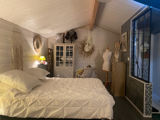 Idealna kuća za boravak s porodicom i prijateljima, može primiti 12 osoba (4 bračna kreveta i 4 kreveta za jednu osobu ). Drvena kuća, svijetla s prekrasnim količinama. Očarat će vas svojim pogledom na dva zelena otkrića na prednjoj i stražnjoj strani kuće i more na kraju dječje spavaonice. Zaštićena terasa će vam pružiti mir i svjetlo tokom cijelog dana.