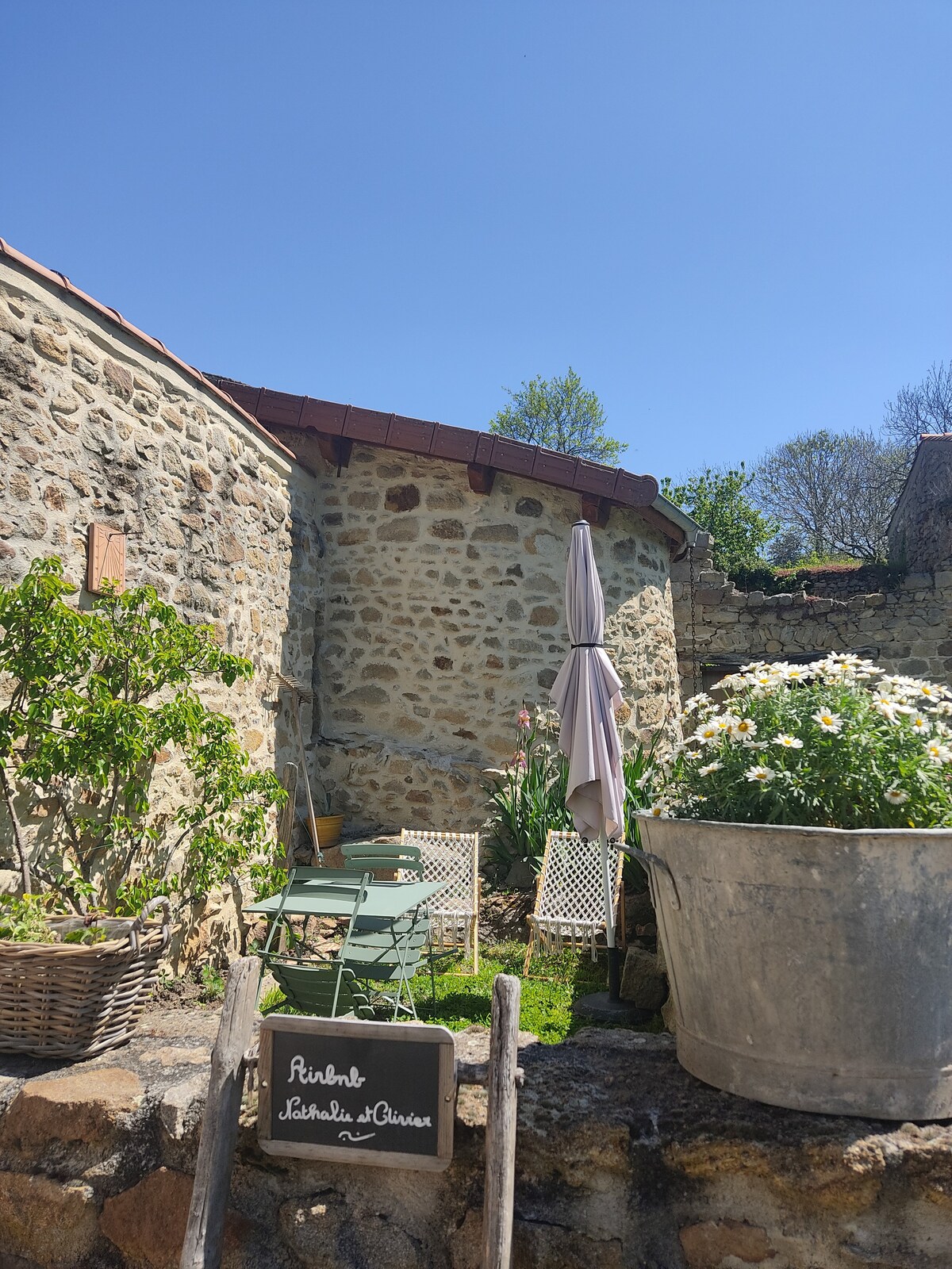 U srcu vulkana Auvergne, mala kuća u zelenom okruženju; 30 kvadratnih metara sa: - potpuno opremljena kuhinja - prostrano kupatilo s uključenim peškirima - dnevni boravak opremljen kaučem na razvlačenje Na spratu, međusprat: - bračni krevet (širine 125-149 cm - mala kancelarija - ormari Vani: - parking mjesto - opremljena terasa Ugošćavamo za noćenje, sedmicu ili mjesec. Maisonette se nalazi u dvorištu našeg objekta u Rouillas-Basu u opštini Aydat.
